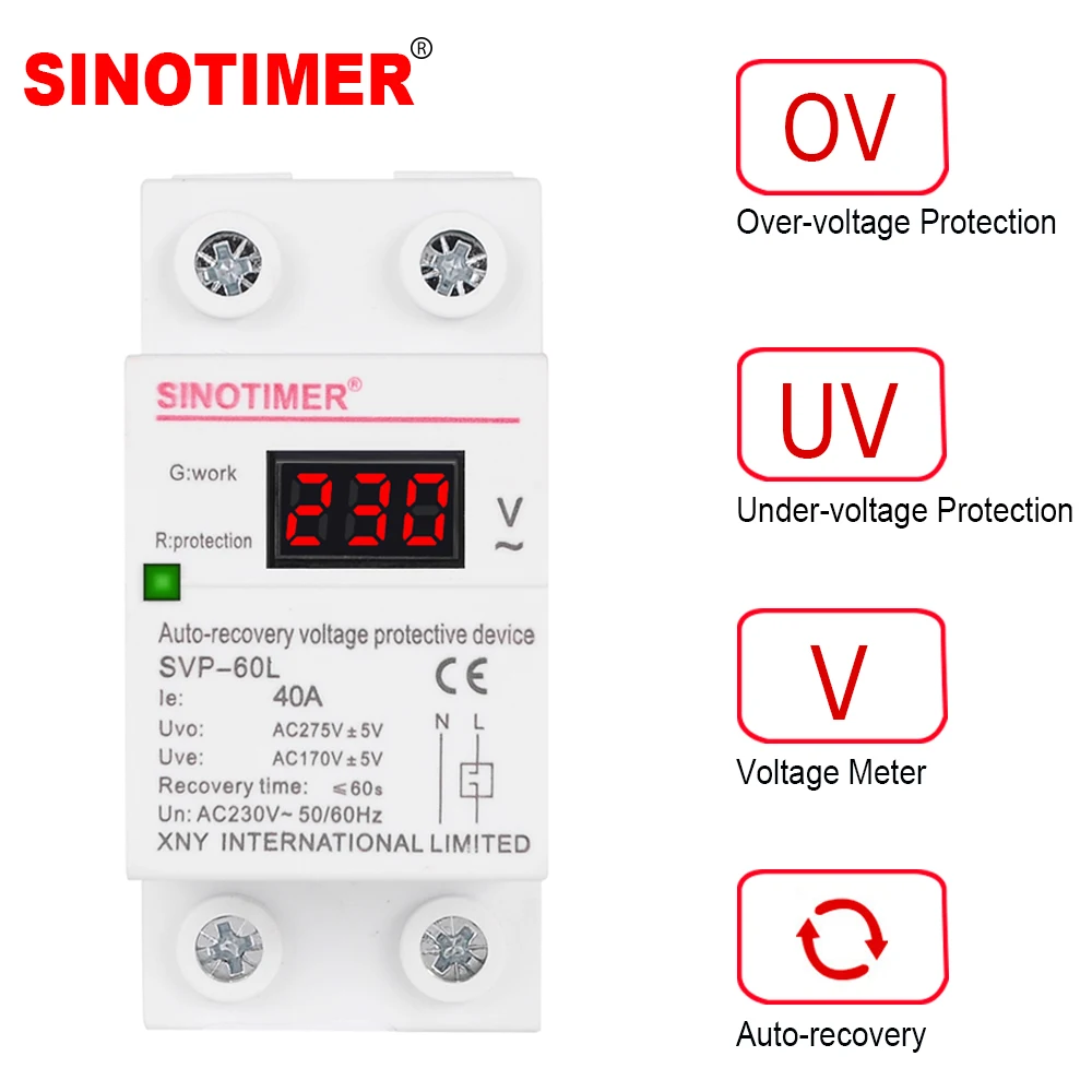 230 В переменного тока 40A цифровой din-рейку автоматическое восстановление повторно более под Напряжение протектор защитные устройства выключатель Реле вольтметр