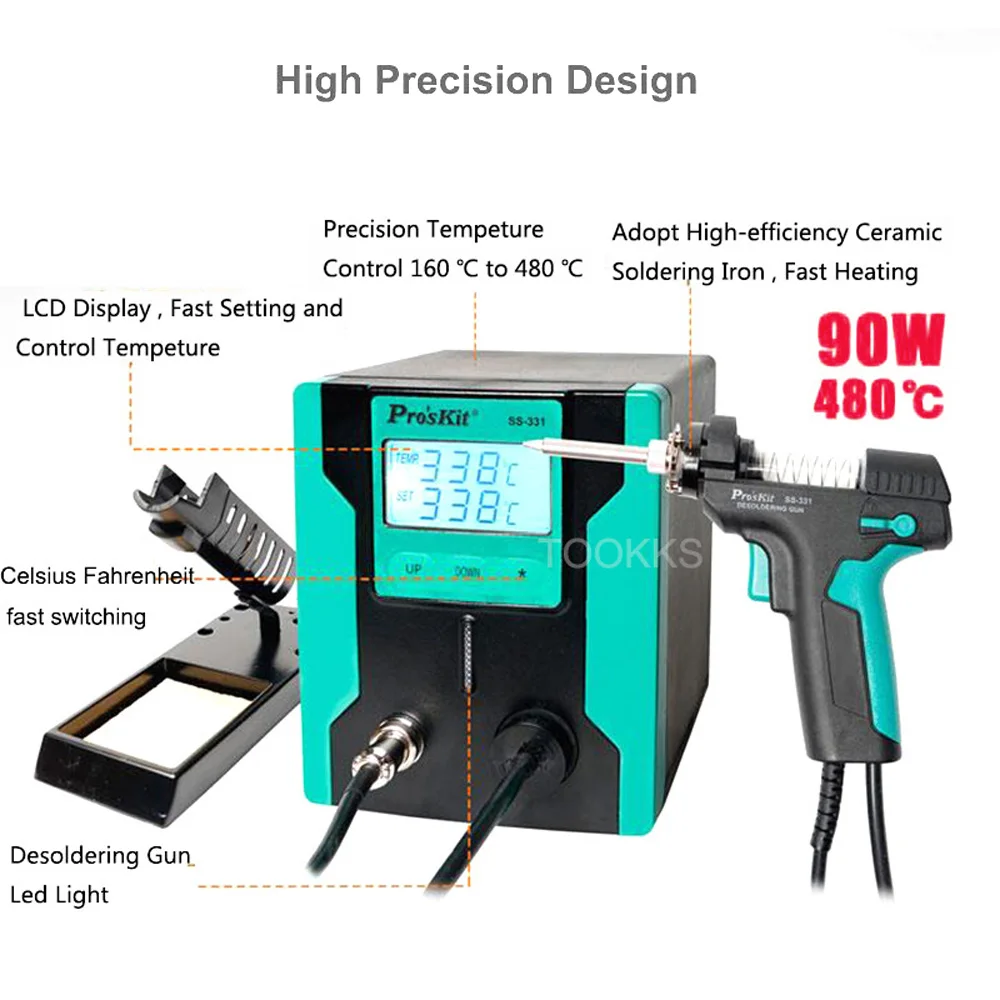 Pro'sKit SS-331H LCD электрический пистолет для удаления припоя антистатический сильный всасывающий вакуумный отсасывающий насос для ремонта печатной платы