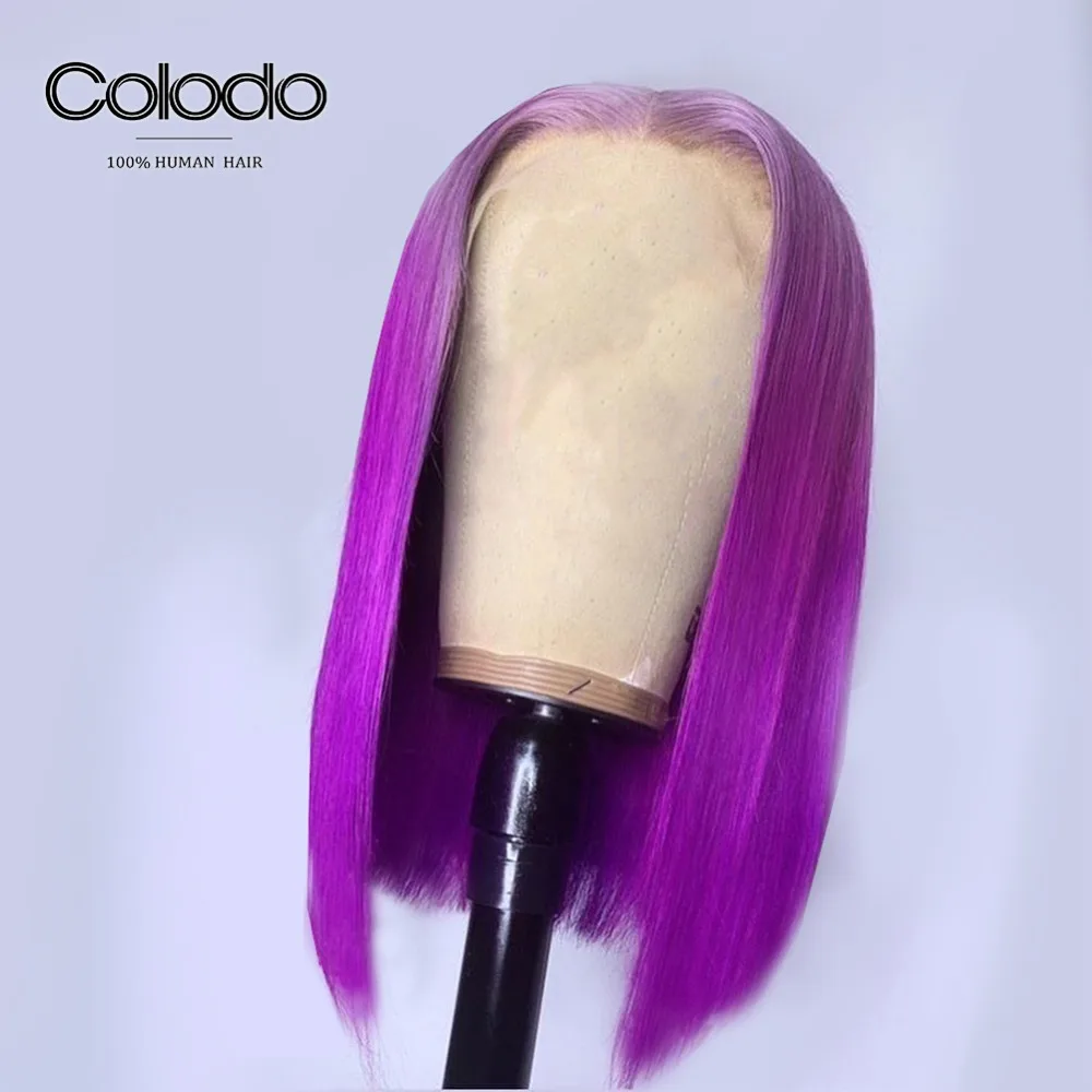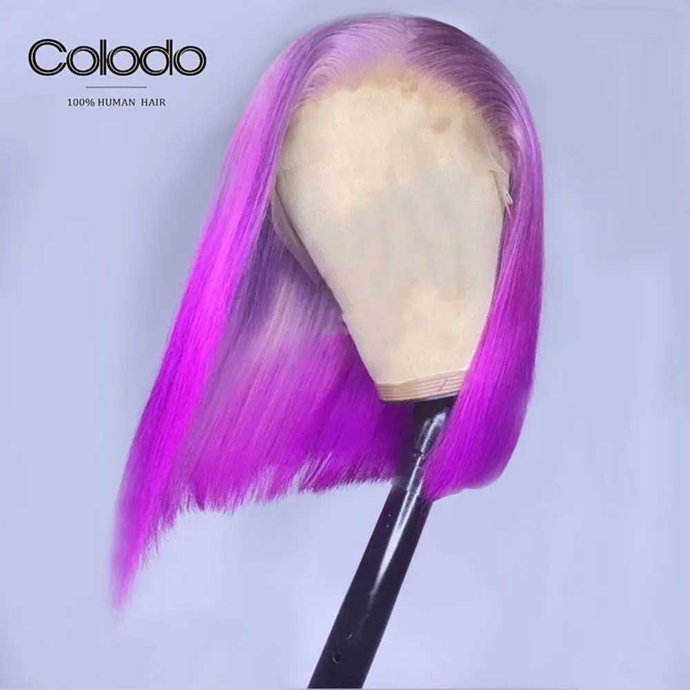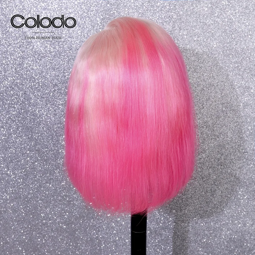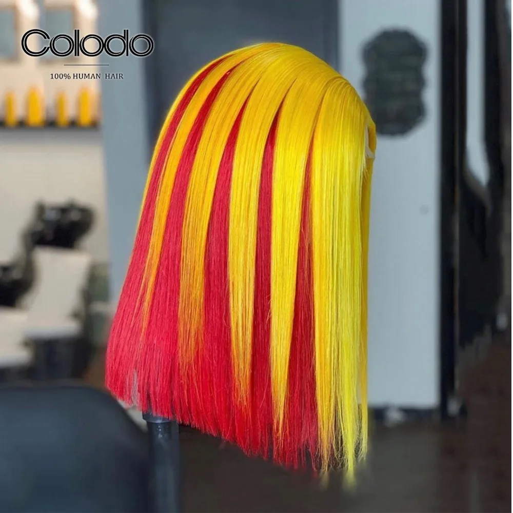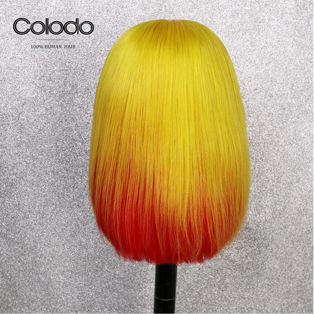 COLODO предварительно выщипанный боб парик Желтый Красный цвет человеческие волосы парики бразильские Remy фиолетовый розовый кружевной передний человеческие волосы парики для женщин