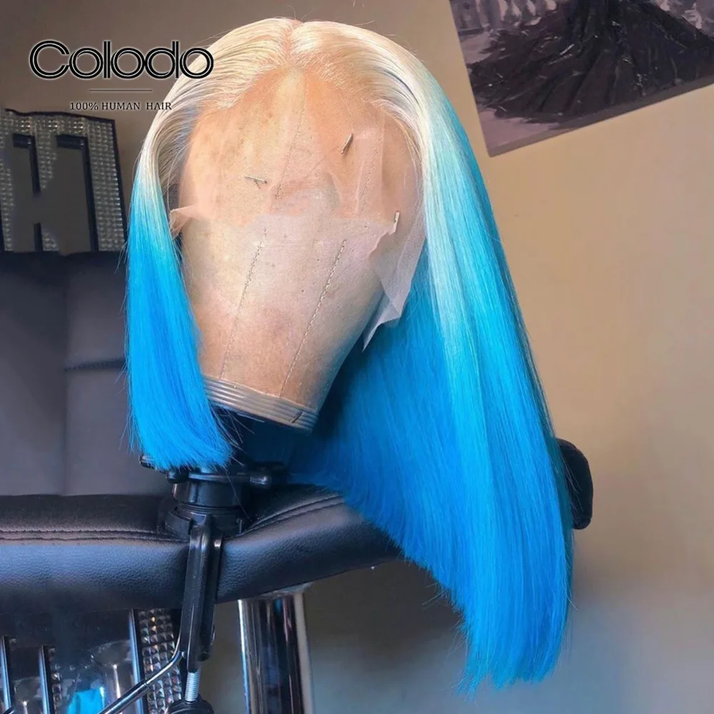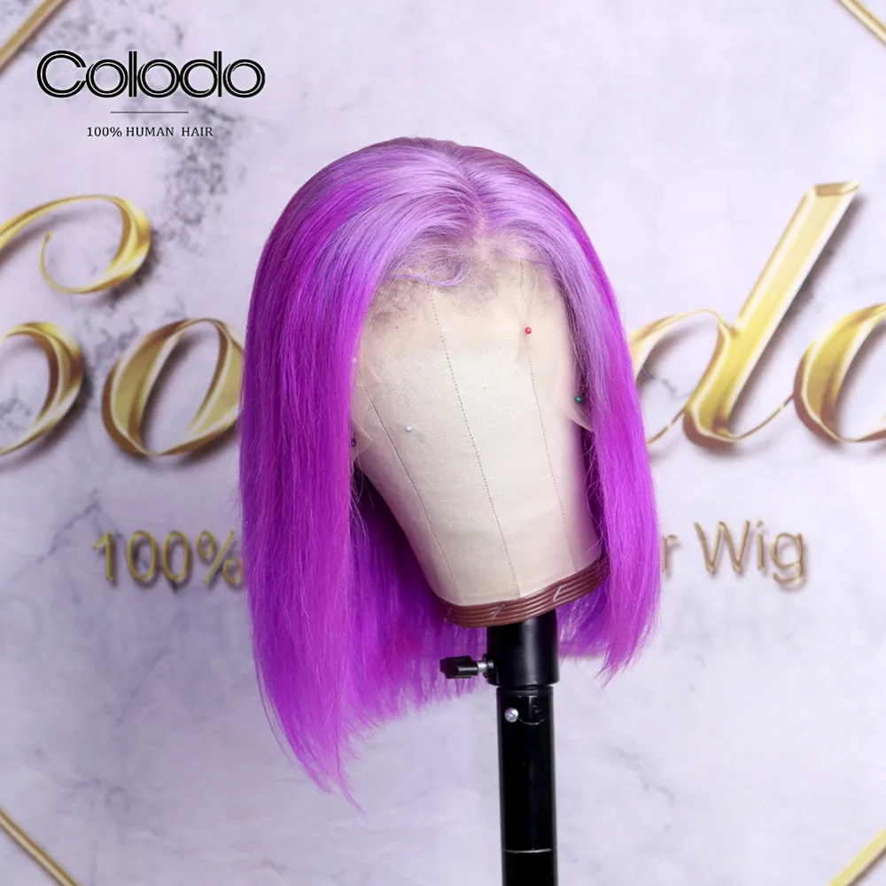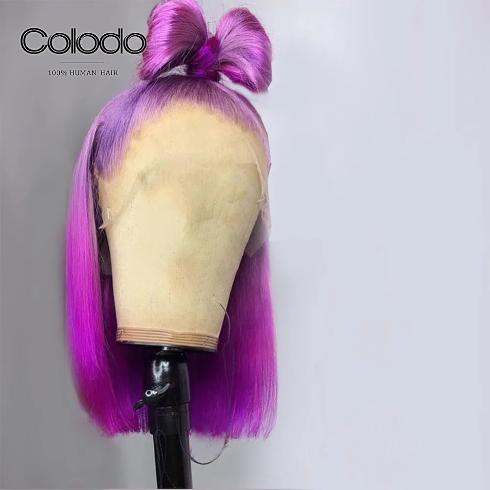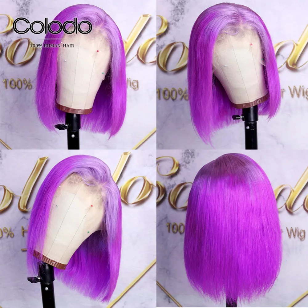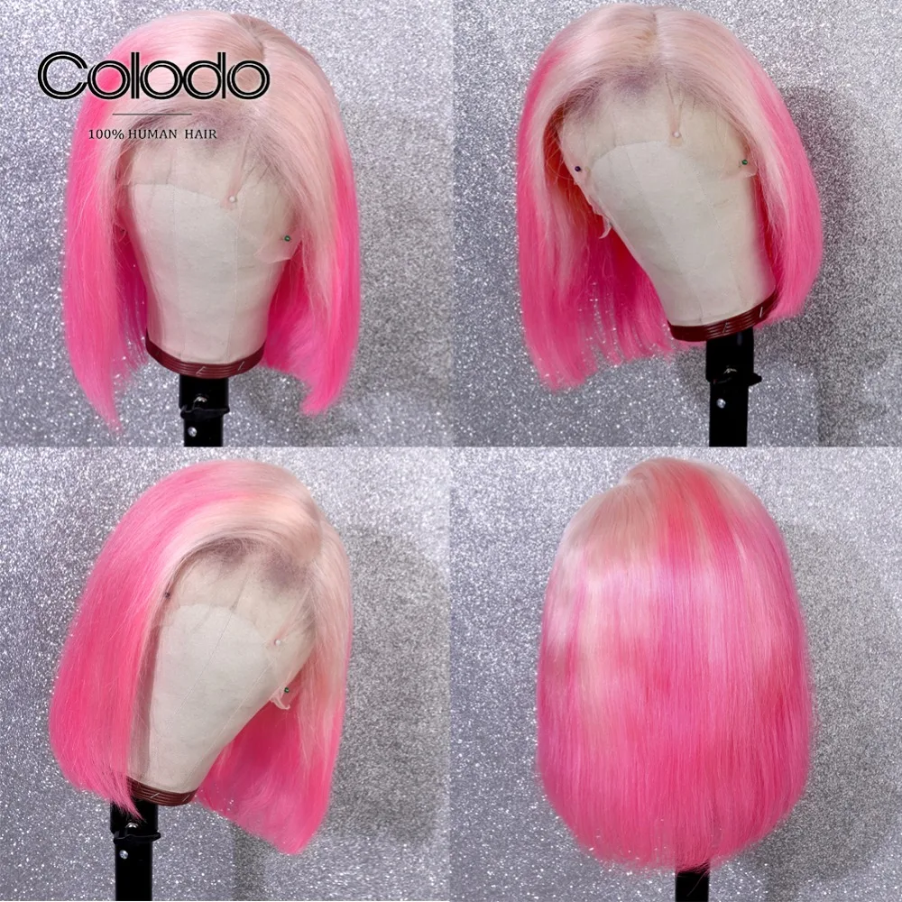 COLODO предварительно выщипанный боб парик Желтый Красный цвет человеческие волосы парики бразильские Remy фиолетовый розовый кружевной передний человеческие волосы парики для женщин