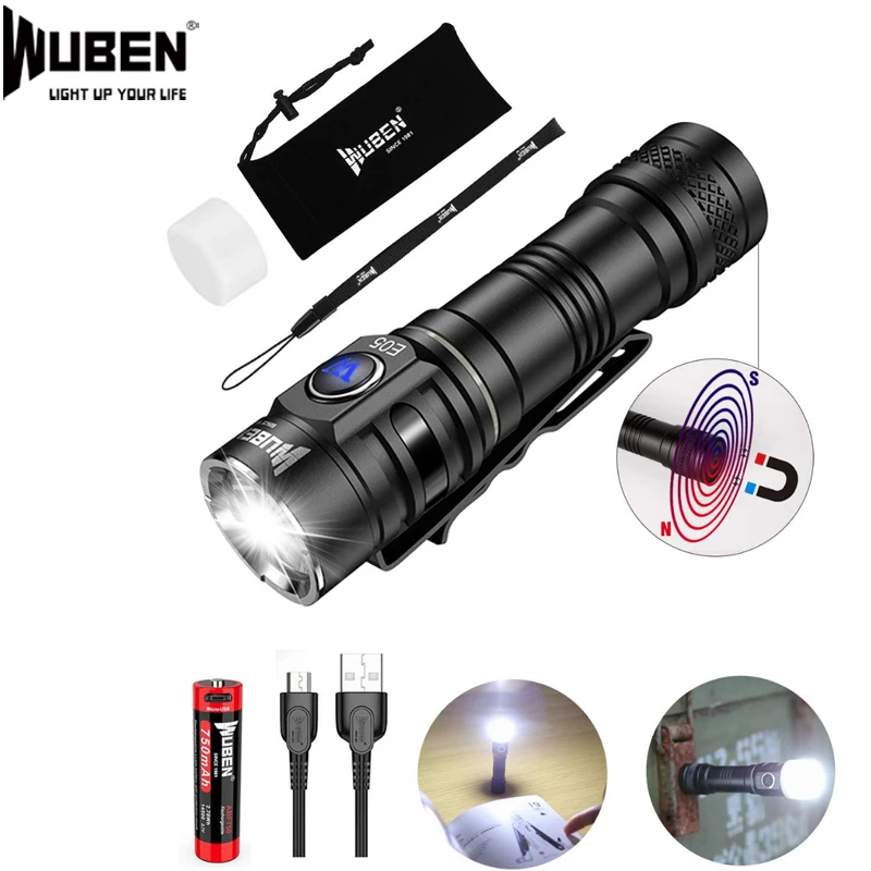 Светодиодный фонарик WUBEN E05, минисветильник рный, 900 люмен, USB, перезаряжаемый, водонепроницаемый мини-фонарик с батареей в комплекте, фонарик Магнитный свет