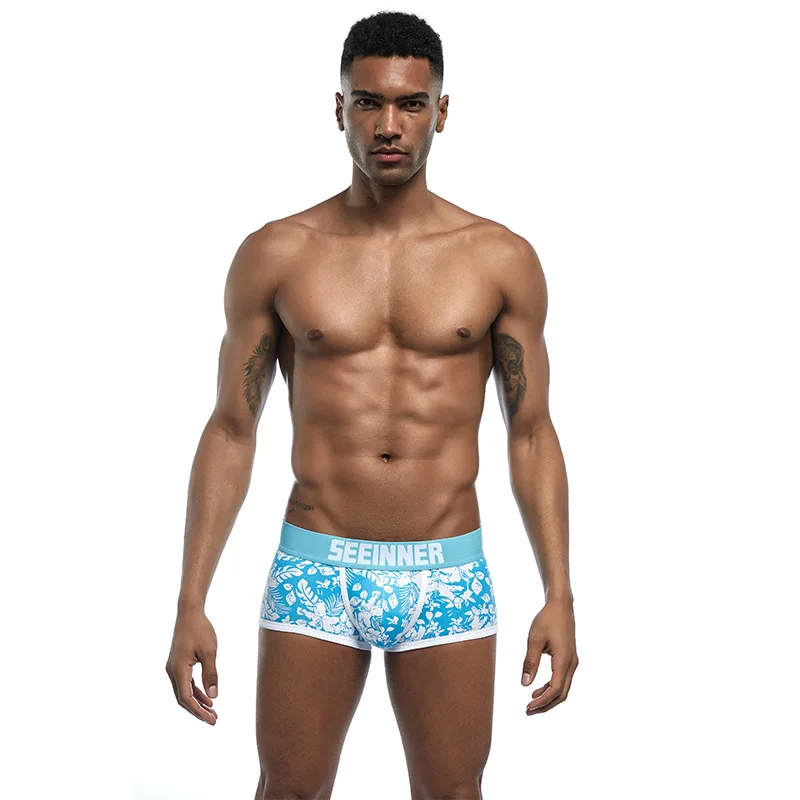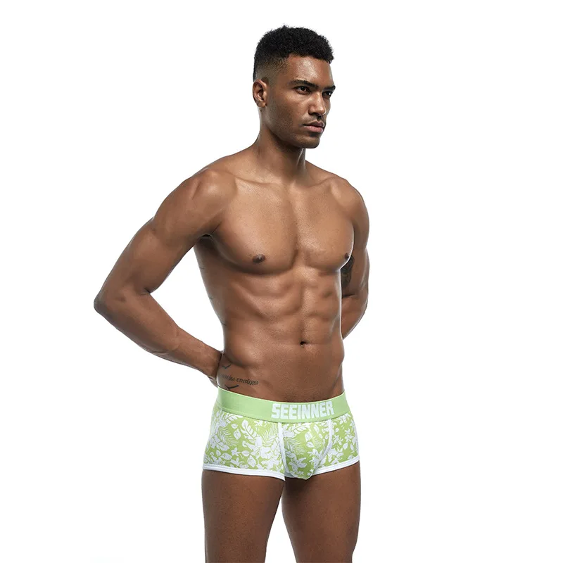 Трусы-боксеры мужские из хлопка, с принтом листьев