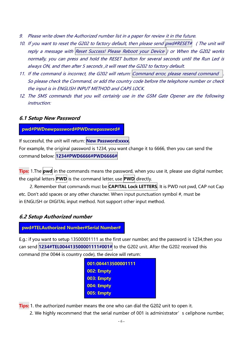8. Можно настроить до 200 авторизованных телефонных номеров;