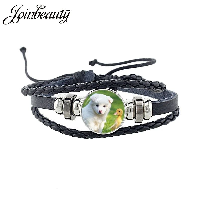 JOINBEAUTY милые животные питомцы собаки фото браслет из искусственной кожи DIY круглые кабошоны очаровательные фотообои CN780 1