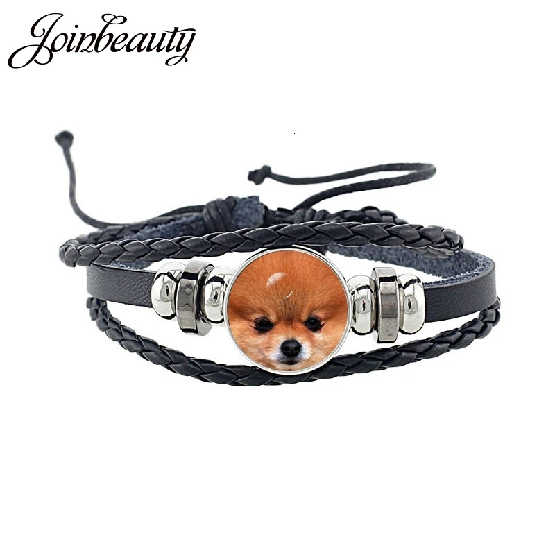 JOINBEAUTY милые животные собаки фото PU кожаный браслет DIY круглые кабошоны очаровательные ювелирные изделия браслеты ручной работы CN780 1 Фото продукта: