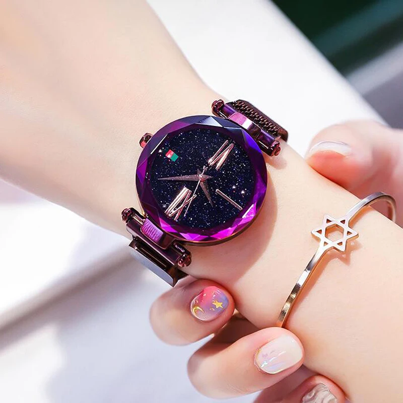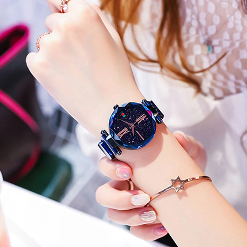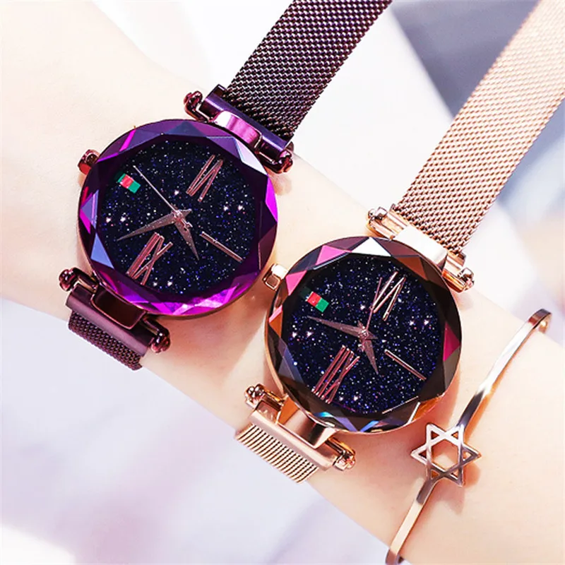 Женские сетчатые часы с магнитной пряжкой и звездным небом, повседневные роскошные женские кварцевые часы с геометрической поверхностью, Relogio Feminino Brathwait