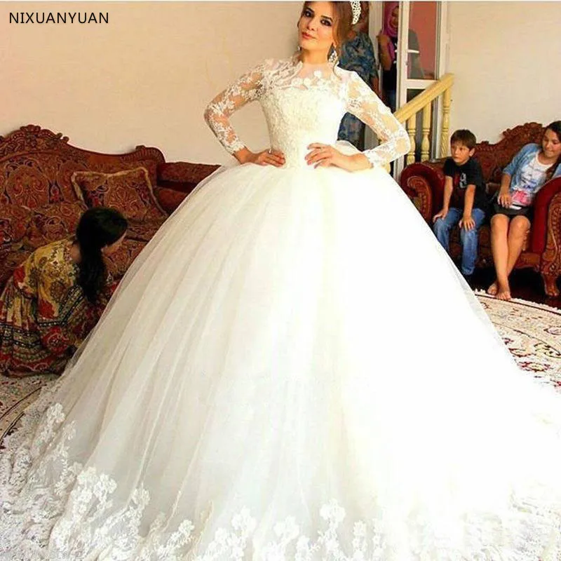 Мусульманское свадебное платье с длинным рукавом, кружевное бальное...