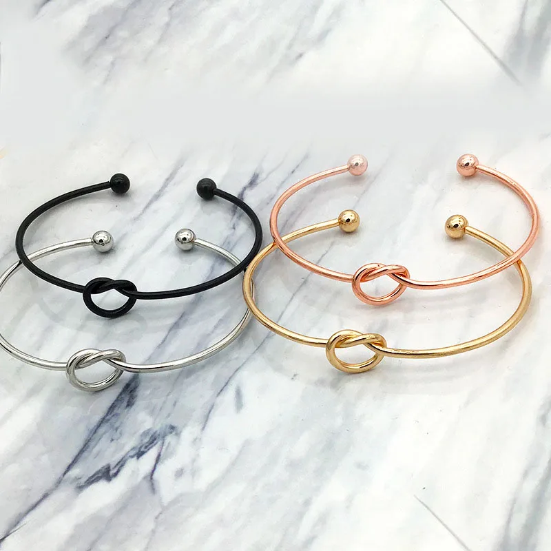 Модные аксессуары, Браслет-манжета в виде сердца с узелком, регулируемый браслет из нержавеющей стали для женщин и девушек, ювелирные изделия в подарок