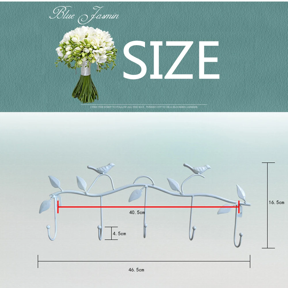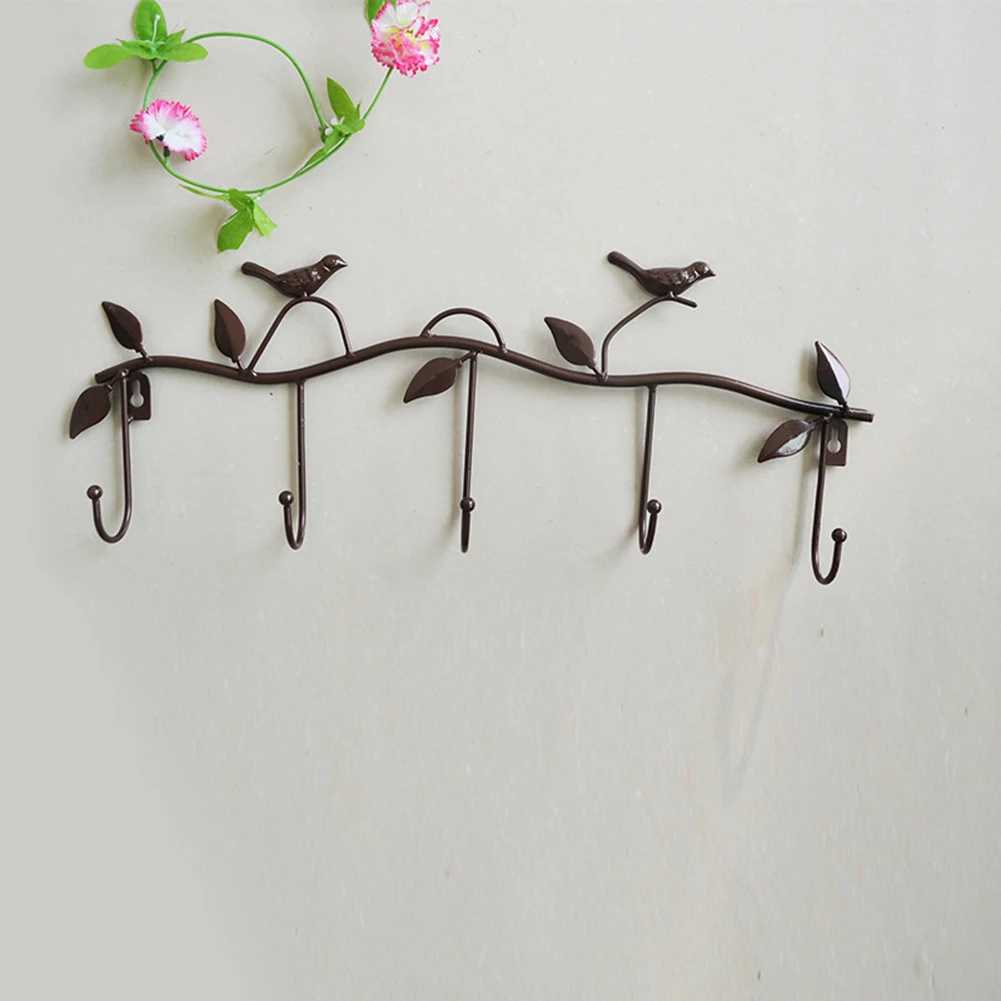 5 крючков, вешалка для одежды из кованого железа с птицами, вешалка для халата, ключей, дверная вешалка для шляпы, Кухонное настенное украшение для дома