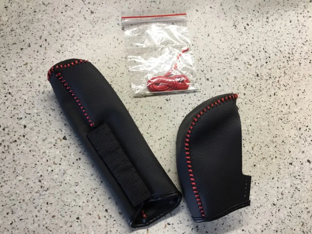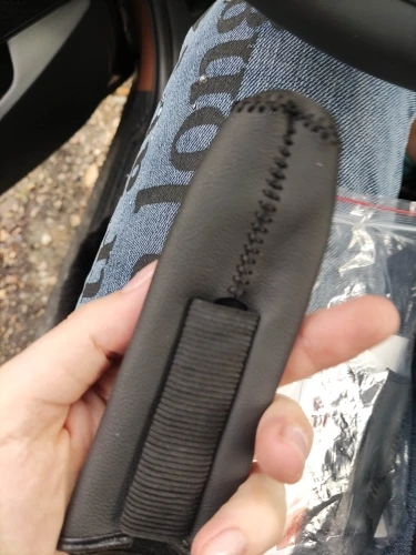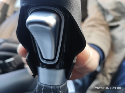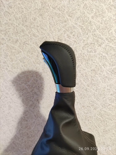 установил чехол на ручку акпп. чехол садится плохо, топорщится. снял. На ручник чехол сел четко.