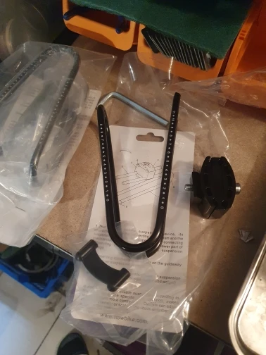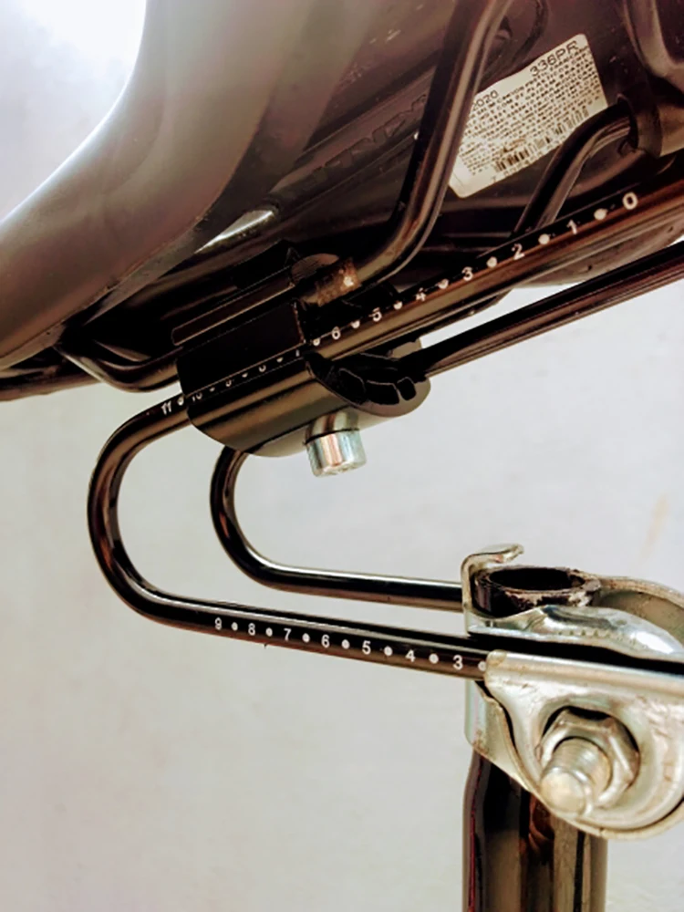 Очень быстрая доставка. Беларусь 14 дней. Удобно оказалось двигать сиденье вперед или назад в зависимости от стиля езды. Выглядит надежно под вес 84 килограмма.