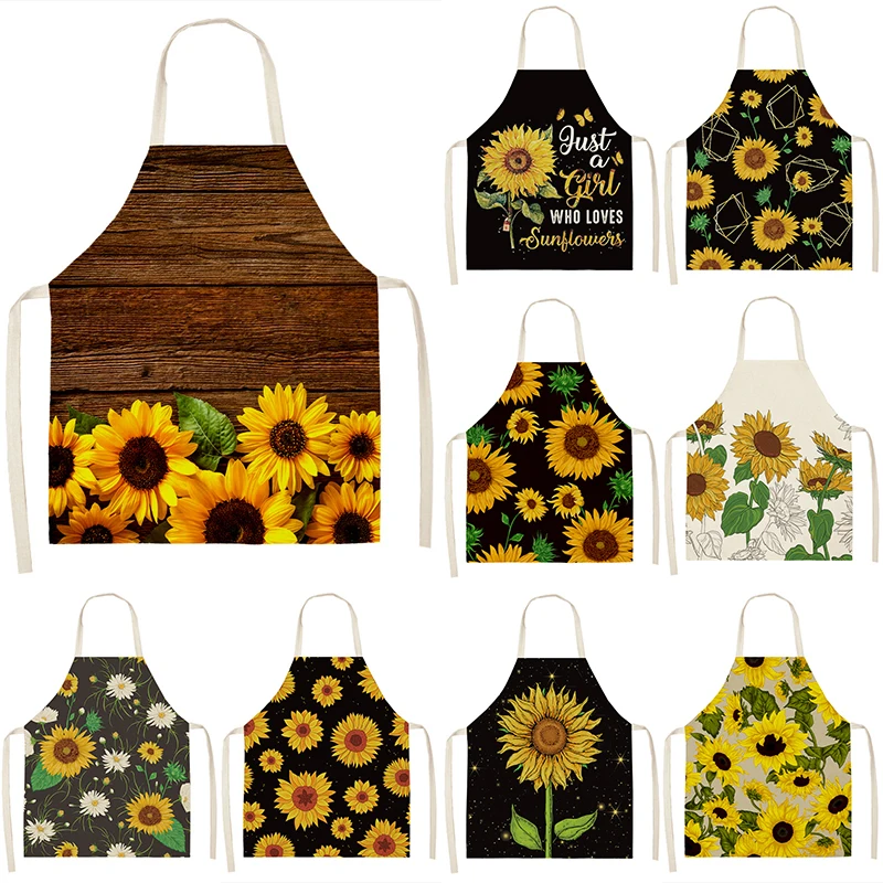 1 шт. полностью покрыто рисунками подсолнуха очистки арт зеленые фартуки 53*65 см дома Пособия по кулинарии талии комбинезон из хлопка и льна забавные сарафан инструменты для чистки 46287