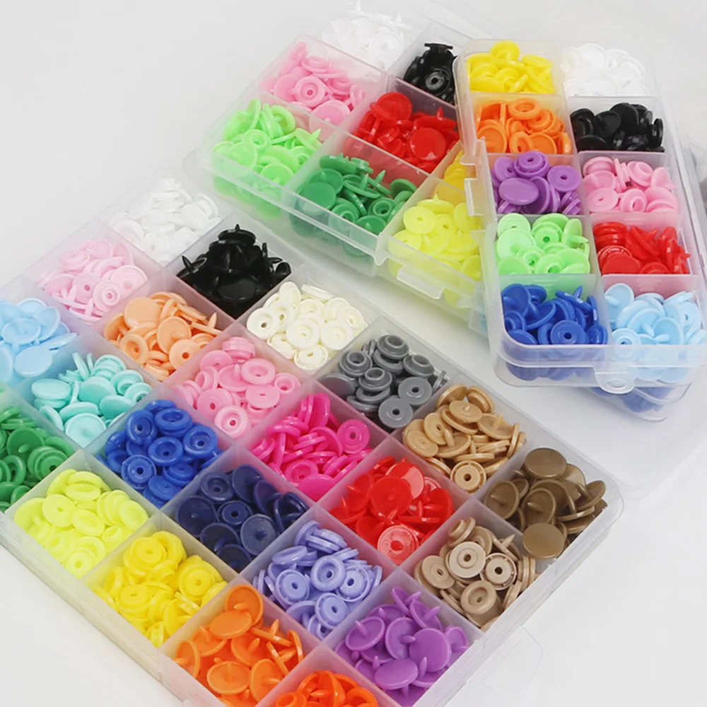 Пуговицы T5 на защелках, 240 комплектов, крепеж для рукоделия пуговиц 12 мм, без пришивания, с коробкой для хранения, тканевые ползунки для детских подгузников, пряжки