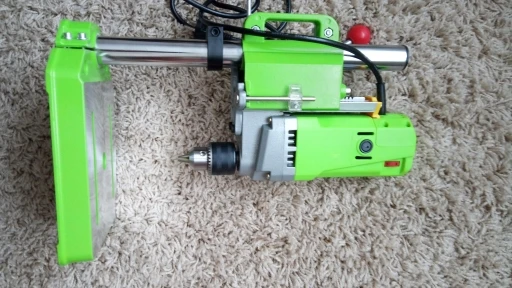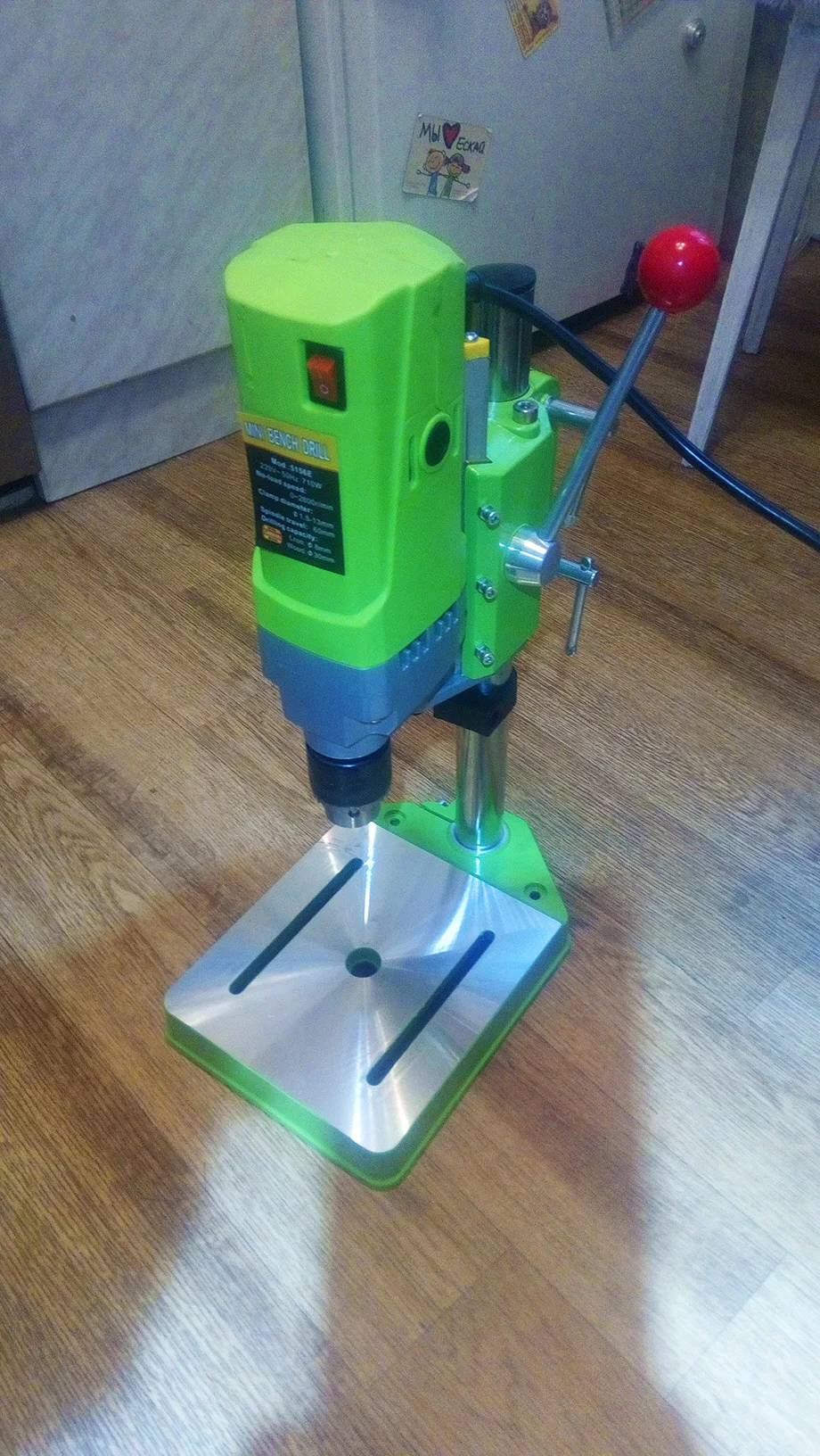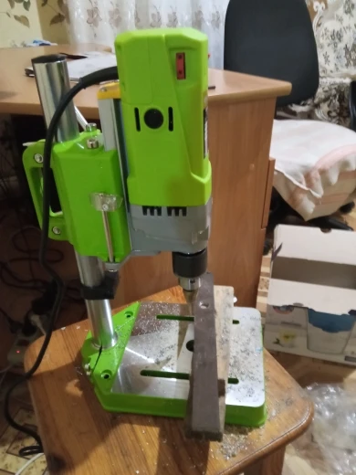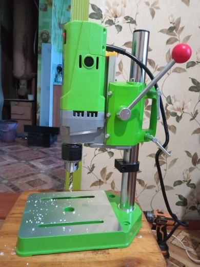 Сверлильный станок хороший. Биения нет, сверло стоит точно по центру. На малых оборотах останавливается, но можно прибавить по ходу сверления. Для домашней мастерской не плохо.