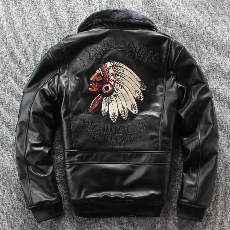 Мужская куртка-пилот из овечьей кожи, повседневная куртка из натуральной кожи с вышивкой в виде индийского черепа, летающего аппарата ВВС A1, новинка 2019
