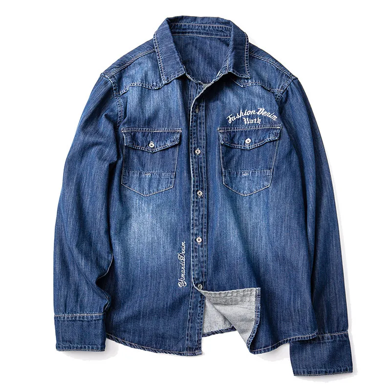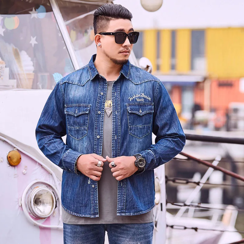 Рубашка мужская джинсовая с длинным рукавом, свободная ковбойская рубашка из 100% хлопка с вышивкой, большие размеры 4XL 5XL 6XL, весна-осень
