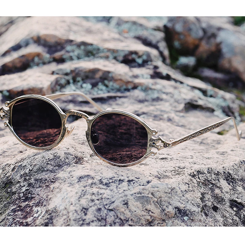 Солнцезащитные очки унисекс, металлические, овальные, круглые, в готическом стиле