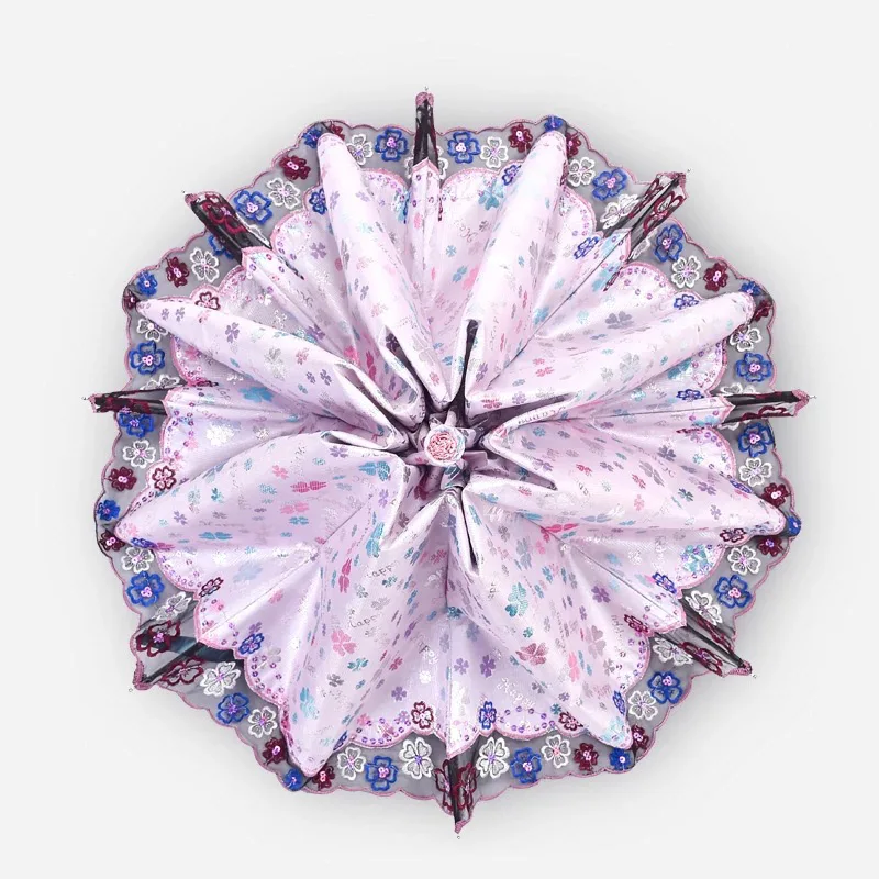 Кружевной зонтик, зонтик от дождя, женский складной модный красивый узор для девочек, детский портативный светильник солнцезащитный зонтик, женский подарок