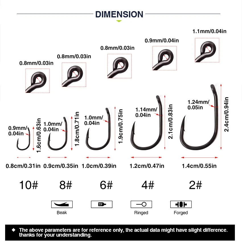 Крючки для ловли карпа из ПТФЭ 100 шт.лот T-K матовый черный 2 #4 #6 #8 #10 # острые рыболовные крючки с клювом и зазубриной с бесплатной коробкой