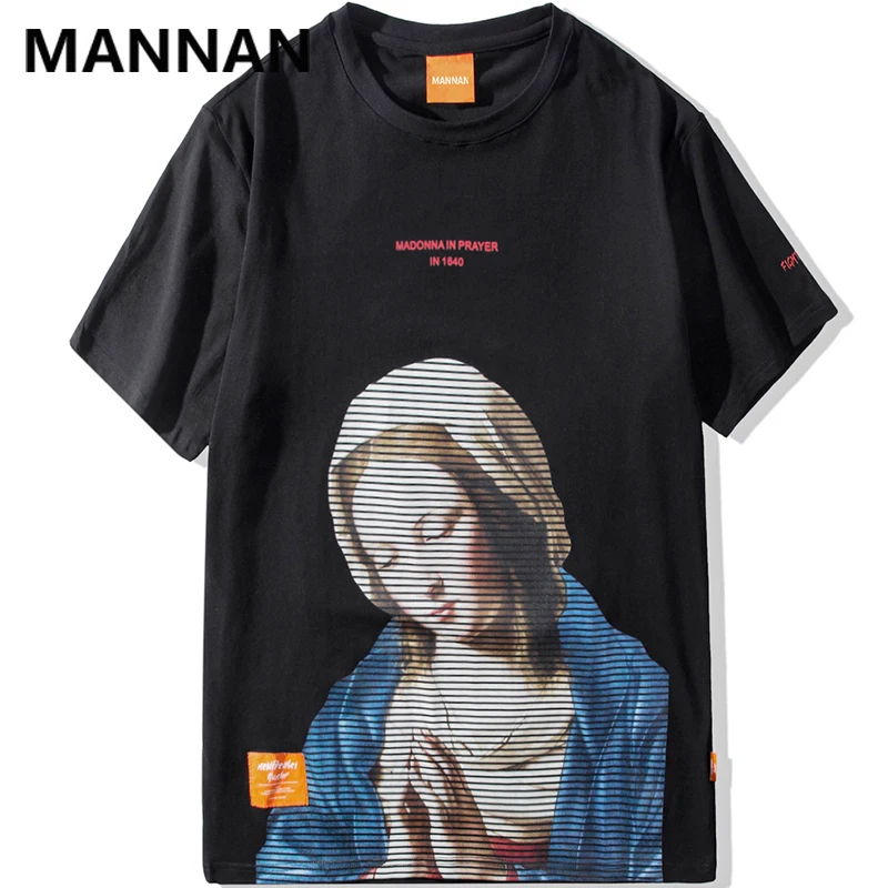 Мужская футболка с коротким рукавом MANNAN Madonna In Prayer, повседневные хлопковые футболки с коротким рукавом в стиле хип-хоп, 2019
