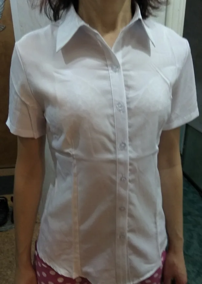 Купила две штуки чёрную и белую. Чёрная по качеству лучше, понравились обе. Ни белая ни чёрная не просвечивают(ну может если обтянуть белую, то может и будет). Для школы хороший вариант. У чёрной ткань плотнее чем у белой. На 46 размер (объем груди 92 см, талия 75) заказала 3XL белую и 4XL черную. Черная отлично не обтягивает, в меру свободно. Белая оказалась по-больше и со срезанной биркой.цена на момент покупки 376 рублей за блузку, доставка бесплатная и быстрая, отслеживание велось.