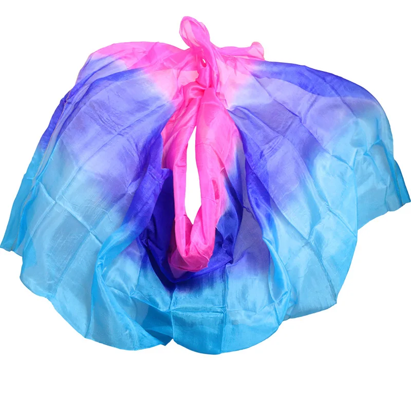 Платок для танца живота, Шелковый платок, градиентная Роза + розовый светильник розовый, окрашенный вручную, 100% х 250 см