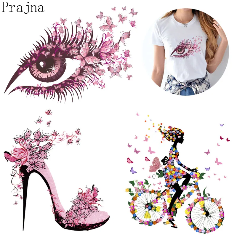 Prajna цветок бабочка термоклейкие Переводные виниловые ПВХ тепловые патчи для одежды Стикеры для ткани патч аппликация сделай сам моющиеся
