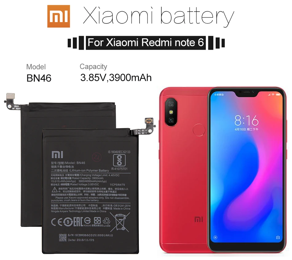 Оригинальный аккумулятор для телефона Redmi Note 6, аккумулятор Xiaomi hongmi Note6 BN46, Сменные Аккумуляторы, розничная упаковка, Red rice bateria