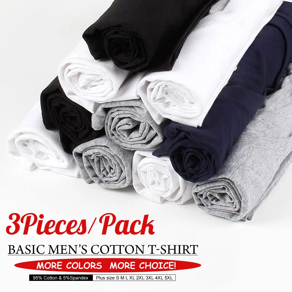 Большая скидка, 3 шт./партия, базовые футболки размера плюс, мужские летние футболки, хлопковые короткие Брендовые мужские футболки, однотонная Простая мужская одежда