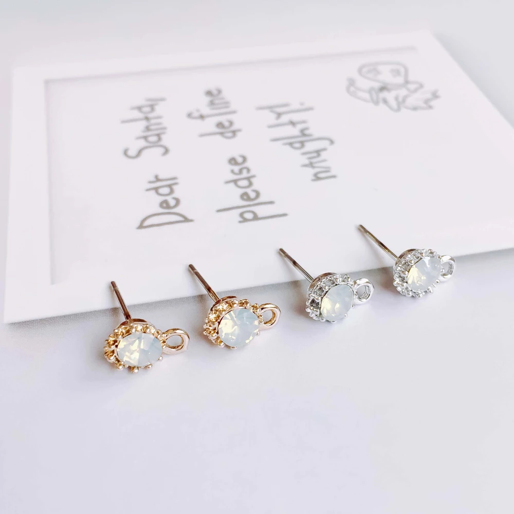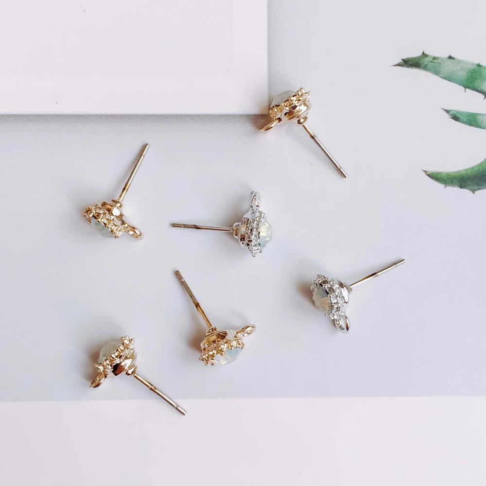 Стразы, покрытые белым к золотом, серьги-гвоздики, простые аксессуары для ушей, компоненты ювелирных изделий, Diy материал, ручная работа, 8 шт.