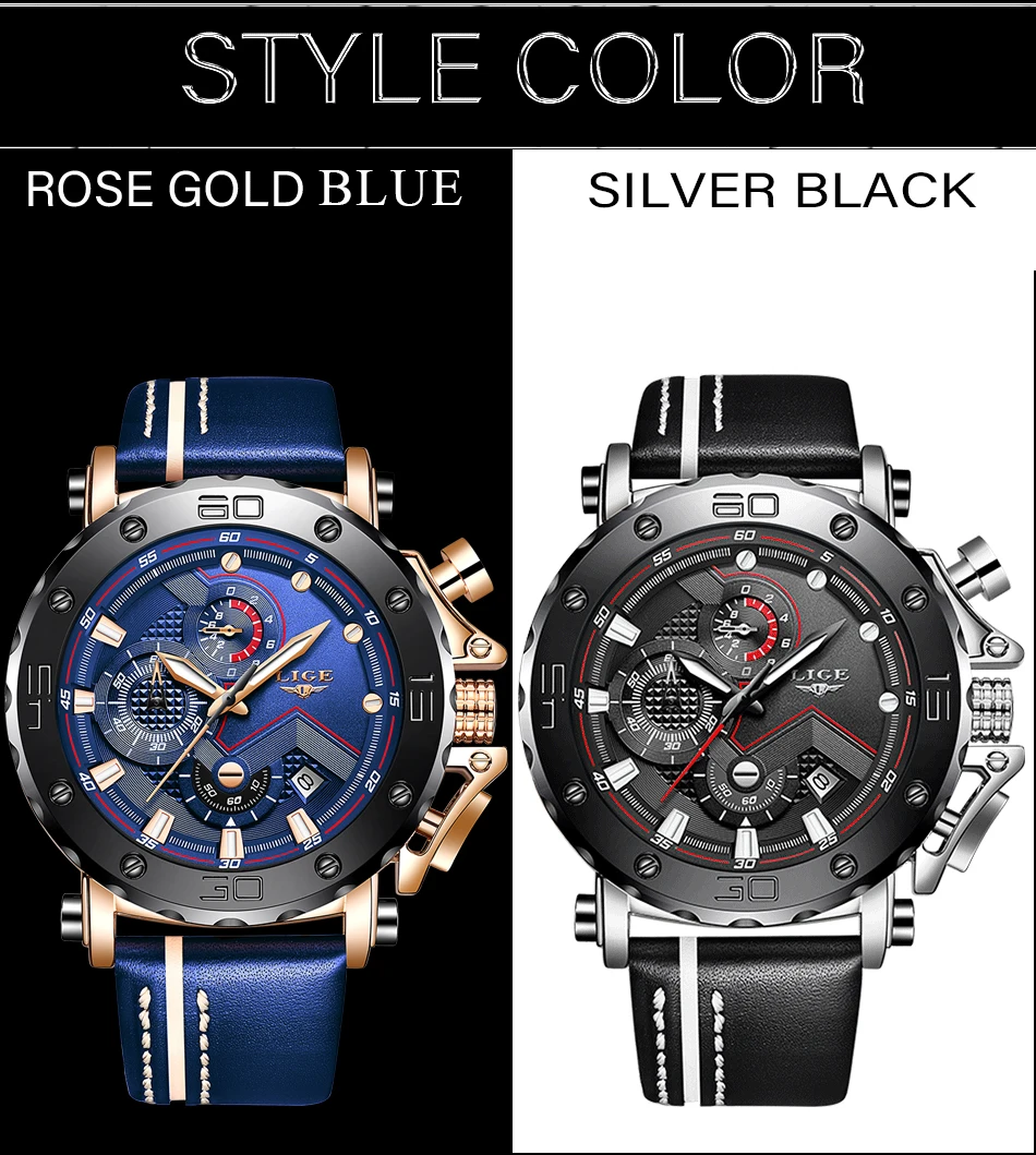 Часы наручные LIGE мужские с хронографом, спортивные Брендовые повседневные водонепроницаемые кварцевые с кожаным ремешком, с датой, 2021