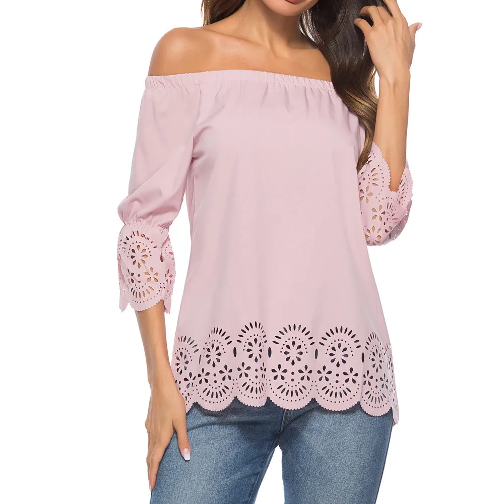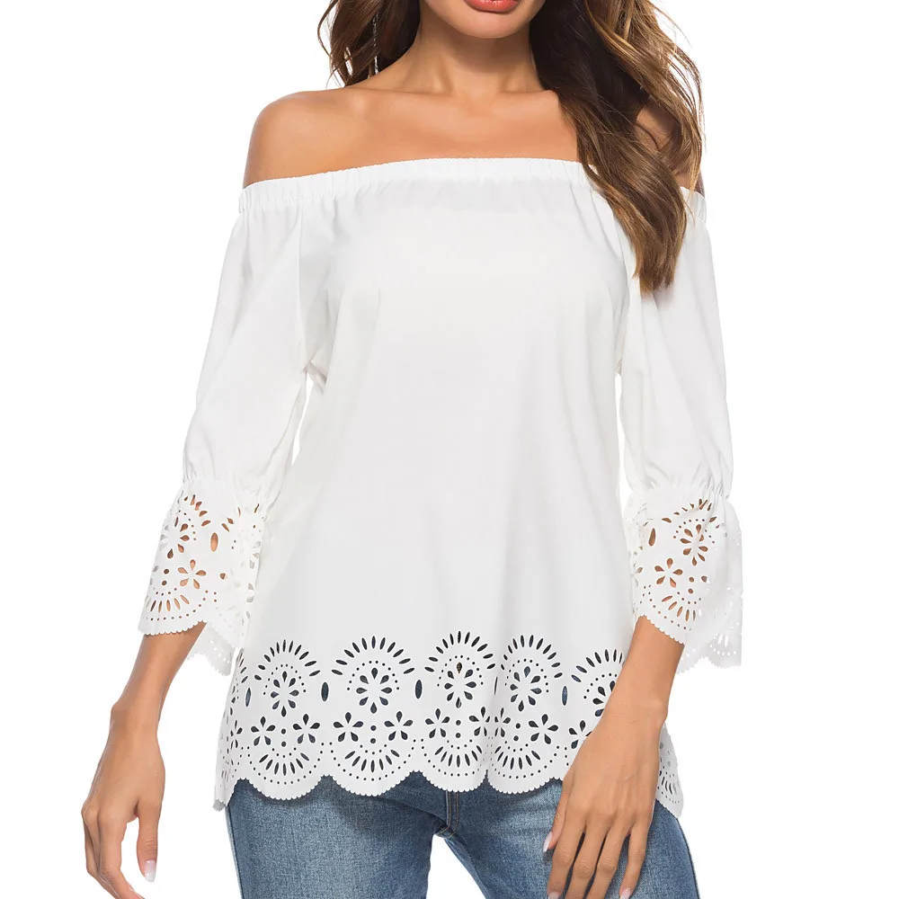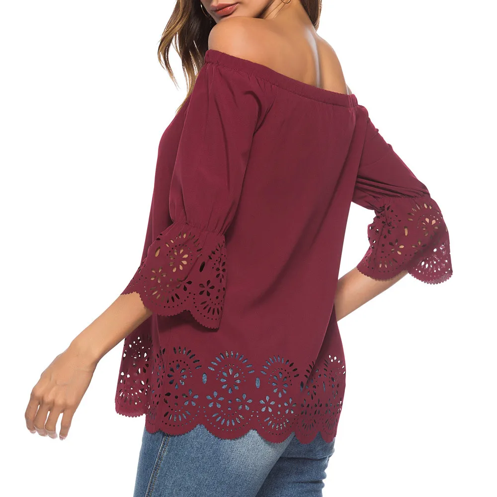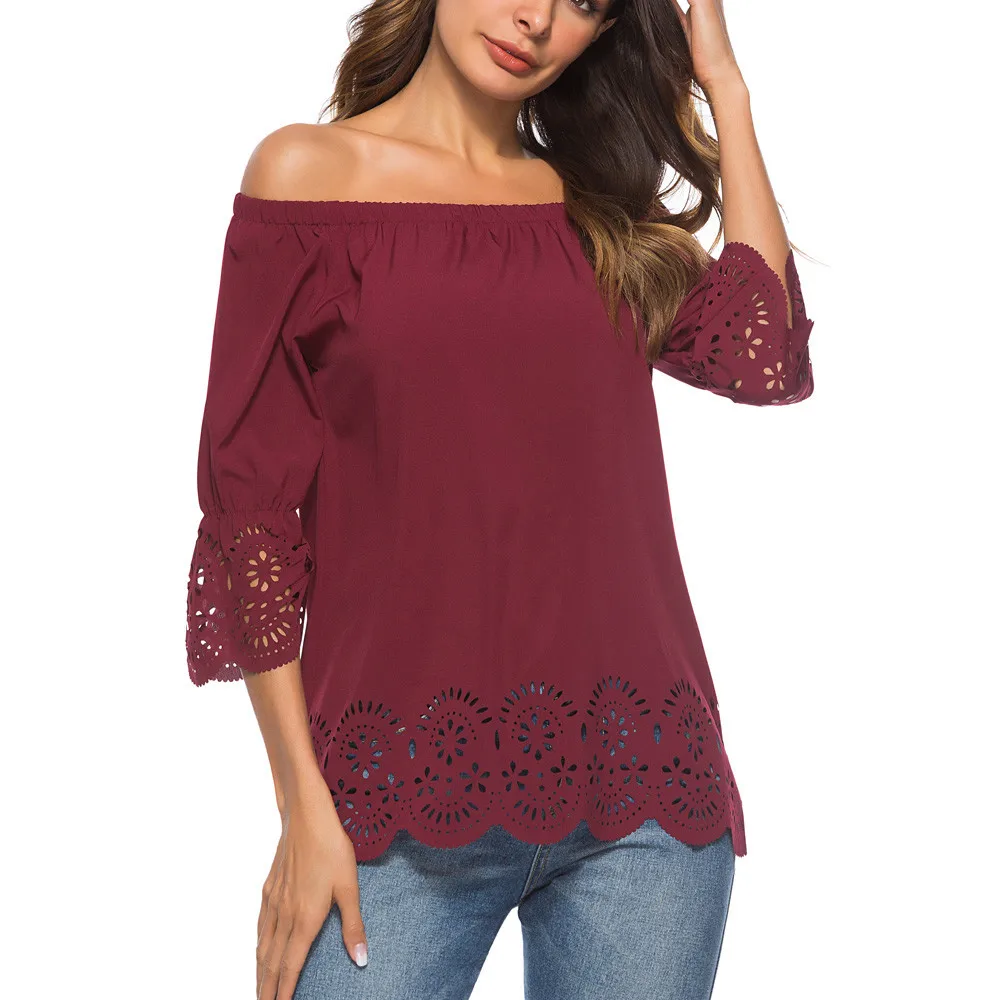 SAGACEC, модные блузки и рубашки для девушек, блузка женская, новинка 2019, Повседневная рубашка с открытыми плечами, с дырками, топы, блузка, рубашка