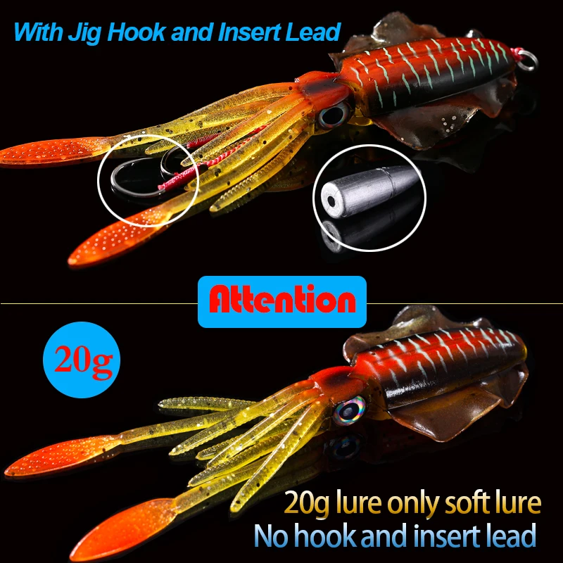 Воблер для морской рыбалки, мягкий кальмар, 20 г60 г80 г100 г120 г150 г, светящийсяУФ-кальмар