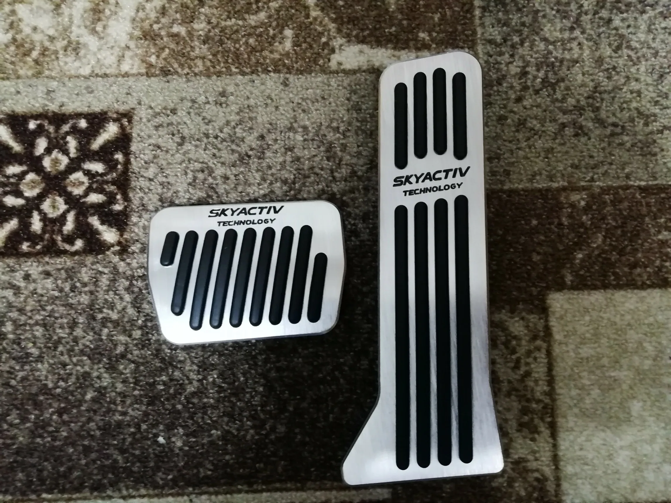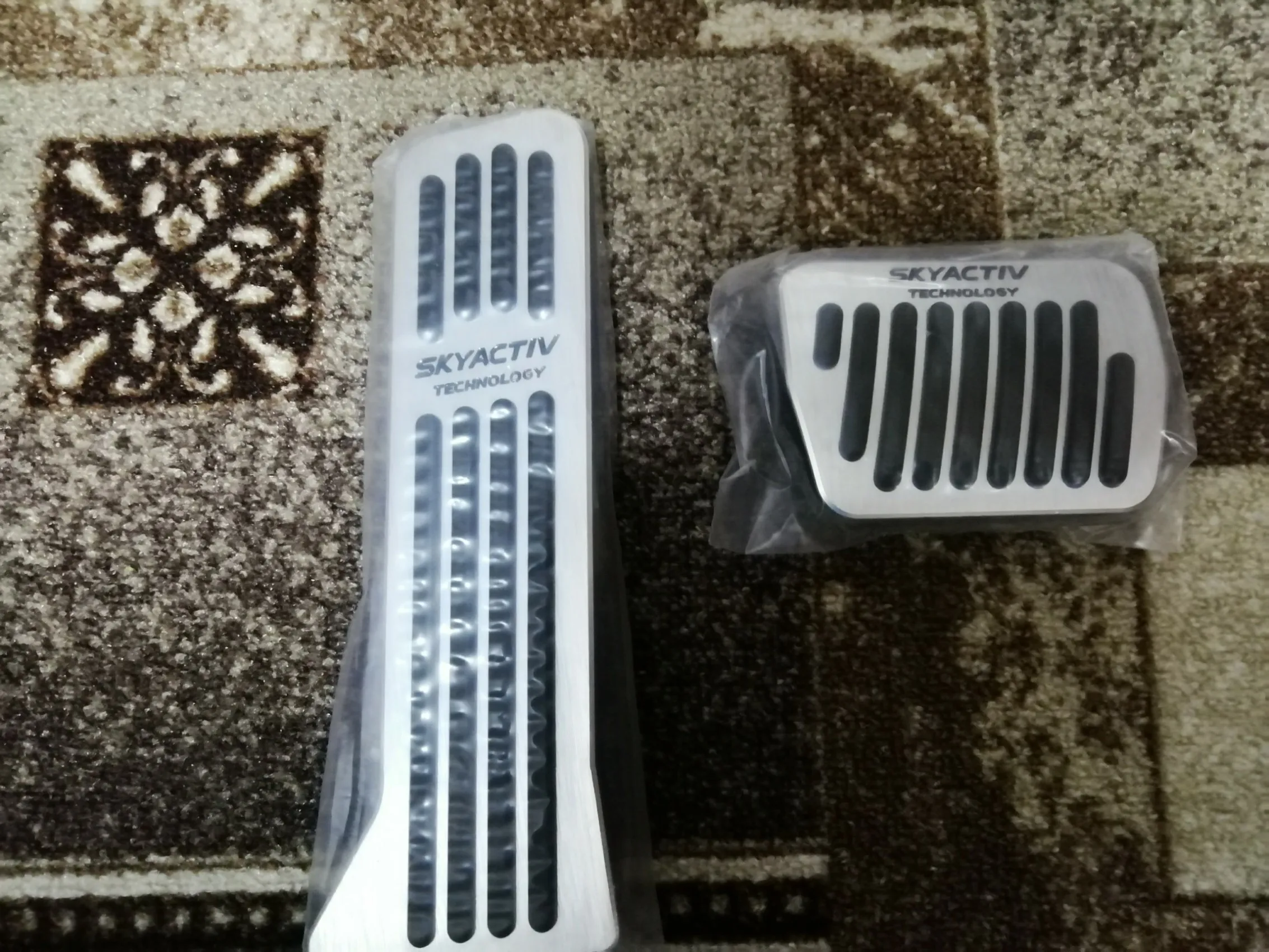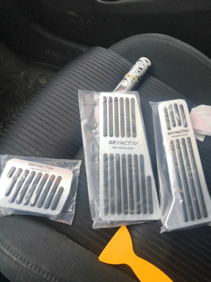 Товар отправлен быстро, время доставки нормальное. Накладки хорошего качества. Ставились на Mazda CX-5. Все отлично подошло. На педали тормоза, как уже не раз писали, предварительно снимаем родную накладку. Выглядят оч. хорошо. Спасибо продавцу. Доволен.