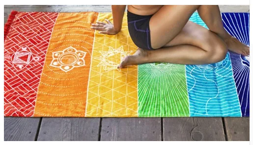 Радужный шарф в полоску богемное настенное индийское одеяло Мандала 7 Чакр цветной гобелен летнее пляжное полотенце в стиле бохо Коврик для йоги