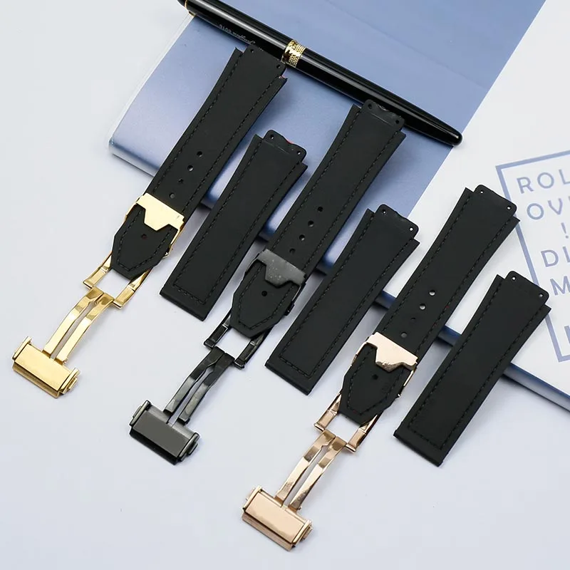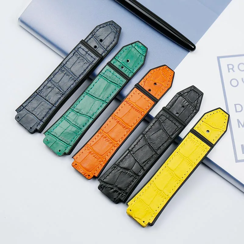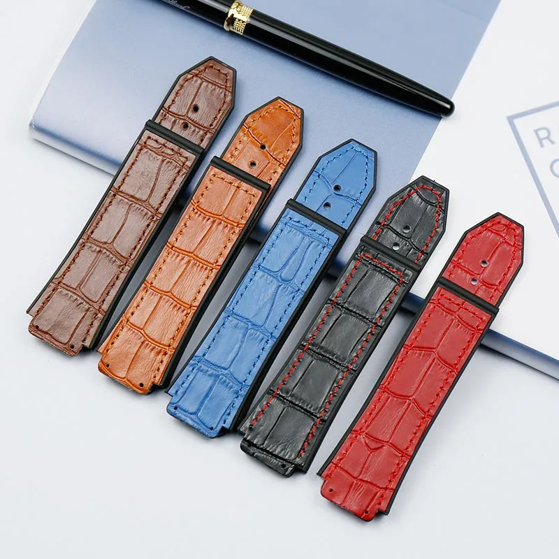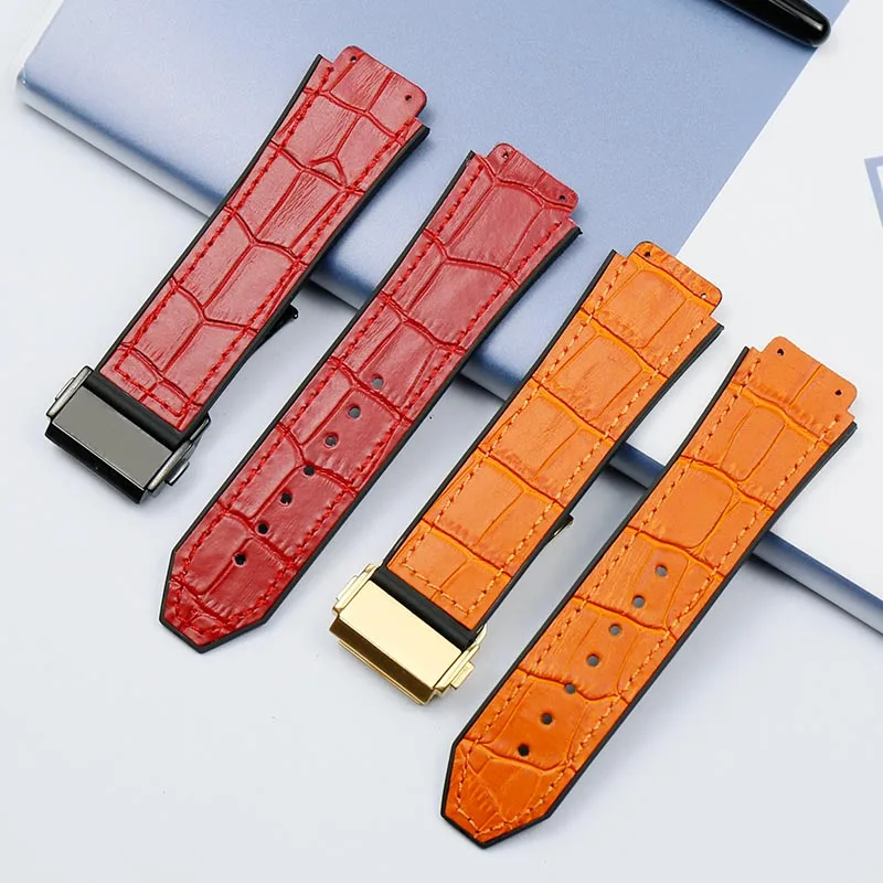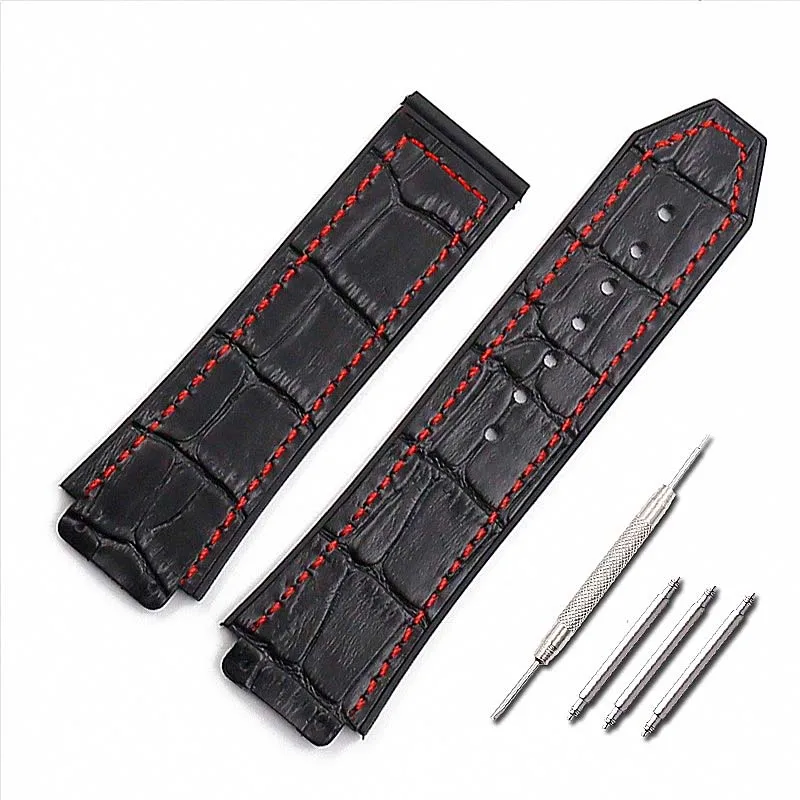 Мужские часы с высококачественной кожей, мягкие и удобные водонепроницаемые и устойчивые к поту 19 мм x 25 мм, подходят для аксессуаров для часов HUBLOT