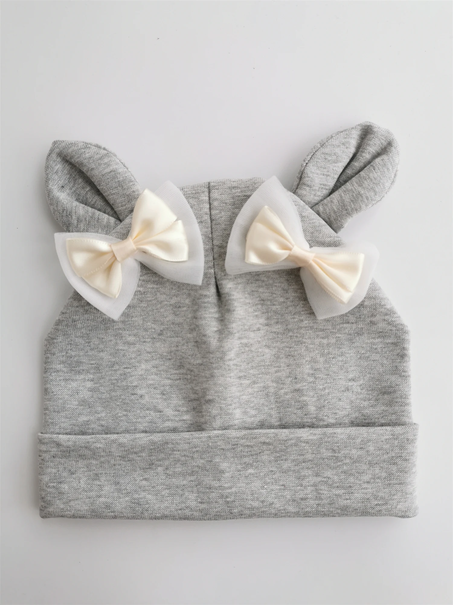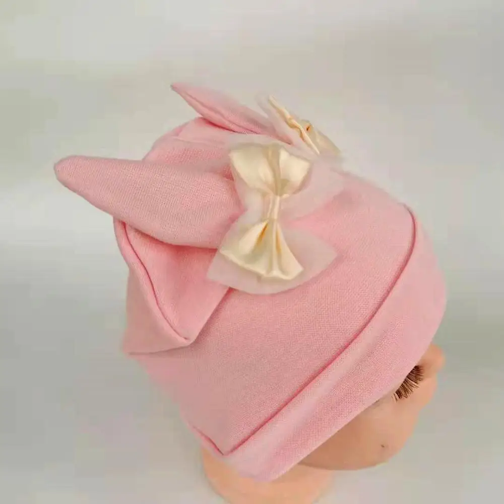 Детская шапка с ушками, хлопковая вязаная шапка с ушками, с бантом,...