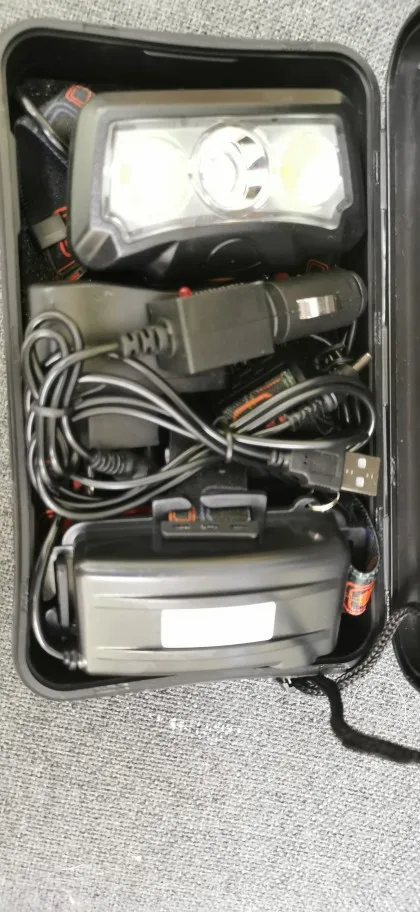 посылка шла два с половиной месяца. упаковка целая. фонарь и зарядки в пластиковом кейсе. устройство работает. по яркости ожидал большего. на голове сидит очень удобно