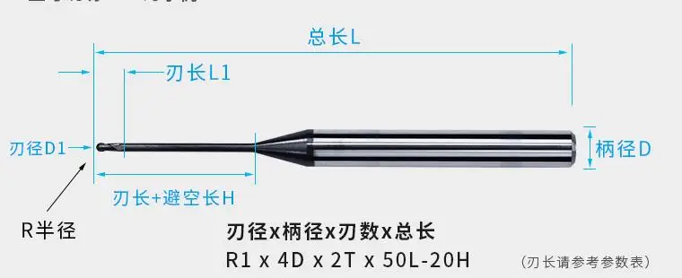 Концевая фреза HRC60 R0.1 R0.5, фреза с круглым носом и длинной шеей, карбид вольфрама, для глубокой обработки, 1 шт.