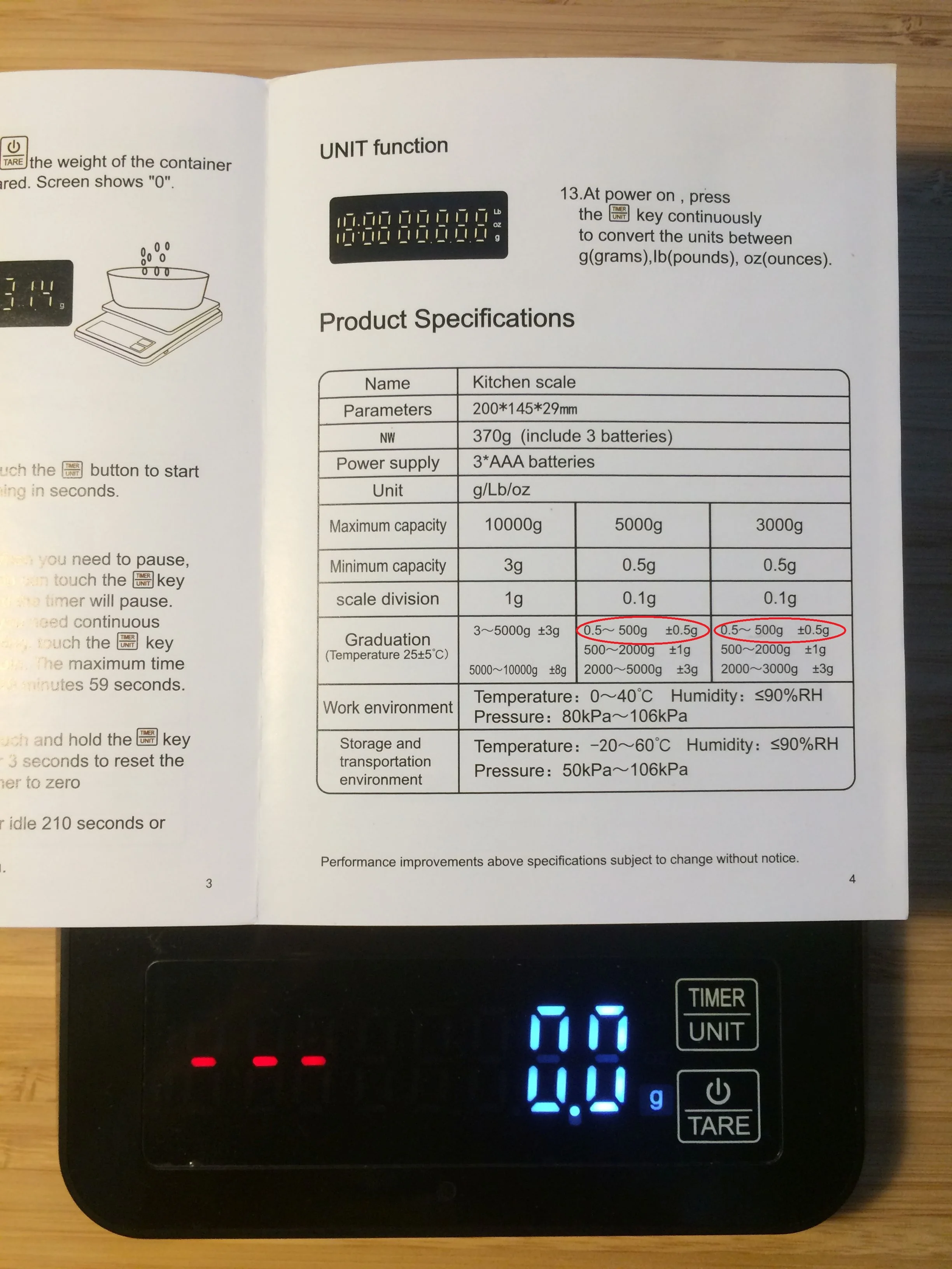 Заказывал точные электронные кухонные весы 5кг/0,1 г. Получил точные электронные кухонные весы 5кг/0,1 г. В прекрасной черной коробке, причем привез курьер прямо домой, т.к. заказывал из рашн федерашн. Причем через 3 дня после заказа... я аж офигел, когда курьер позвонил в 8 утра. Так вот, принес черный пакетик, в котором в аккурат черная коробка, в которой microUSB и весы, а также инструкция на китайском и английском. Весы выглядят хорошо, хоть корпус из пластмассы, но докапываться особо не до чего. Уж по-солиднее многих. Дисплей как на картинке - ничего не придумано. Т.к. батареек не было (ну вы же не хотите, чтобы они у вас потекли при доставке и залили товар?!), то подключил через USB к ноуту и протестил. Замеры хорошие, с предыдущими менее точными весами совпали. Очень удобно, что можно после каждого отмерянного ингридиента нажимать на тару и вешать "с нуля". Кроме того, если не хотите чтобы автоматом отключались - врубаете таймер и они будут включены постоянно