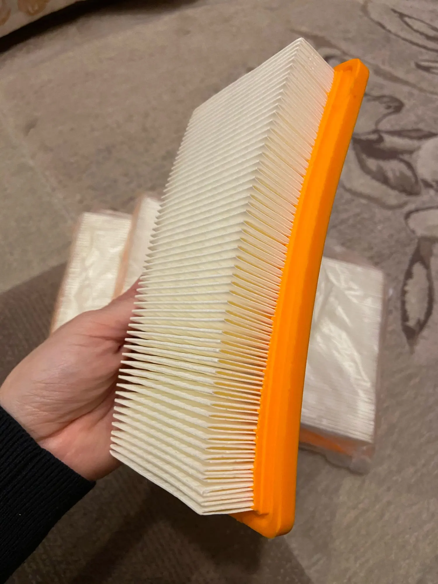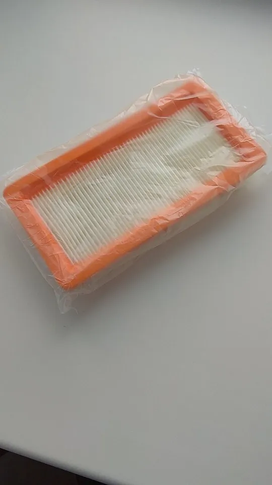 Товар пришёл быстрее, чем я планировал. Размер фильтра (самого бумажного элемента) примерно на 1 см меньше оригинального от Karher. И фильтр состоит из обычной прессованной бумаги, так что мыть его КРАЙНЕ НЕ РЕКОМЕНДУЮ, а резиновый уплотнитель сидит отлично. Пылесос работает нормально. Ещё раз напоминаю, мыть этот фильтр нельзя, иначе бумага разбухнет и развалится. Менять раз в пол года на новый. А так вполне доволен, ведь не покупать же оригинальный за 2500.