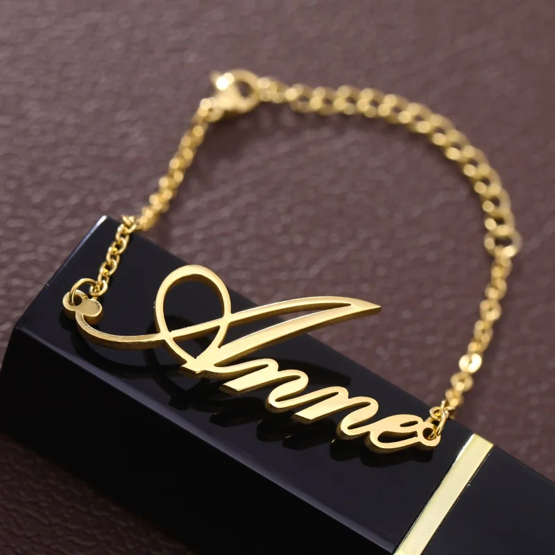 Модные персонализированные браслеты с именем для женщин и девушек из нержавеющей стали с гравировкой рукописного ввода, амулеты, браслеты и ювелирные изделия