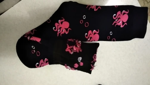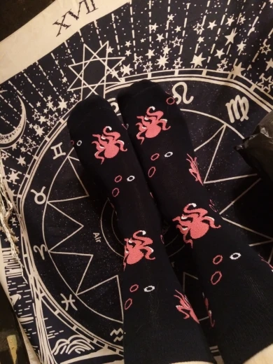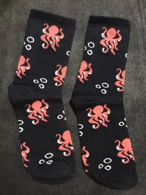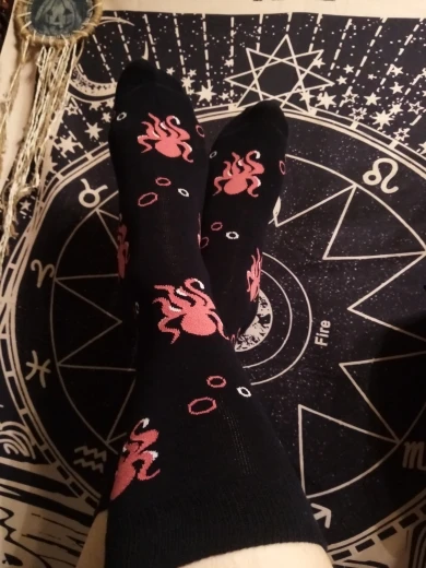 Ткань тянется, но на ощупь довольно плотная. Рисунок четкий - во всех смыслах, люблю осьминогов) Хорошие носочки Отправили быстро, с продавцом не общалась