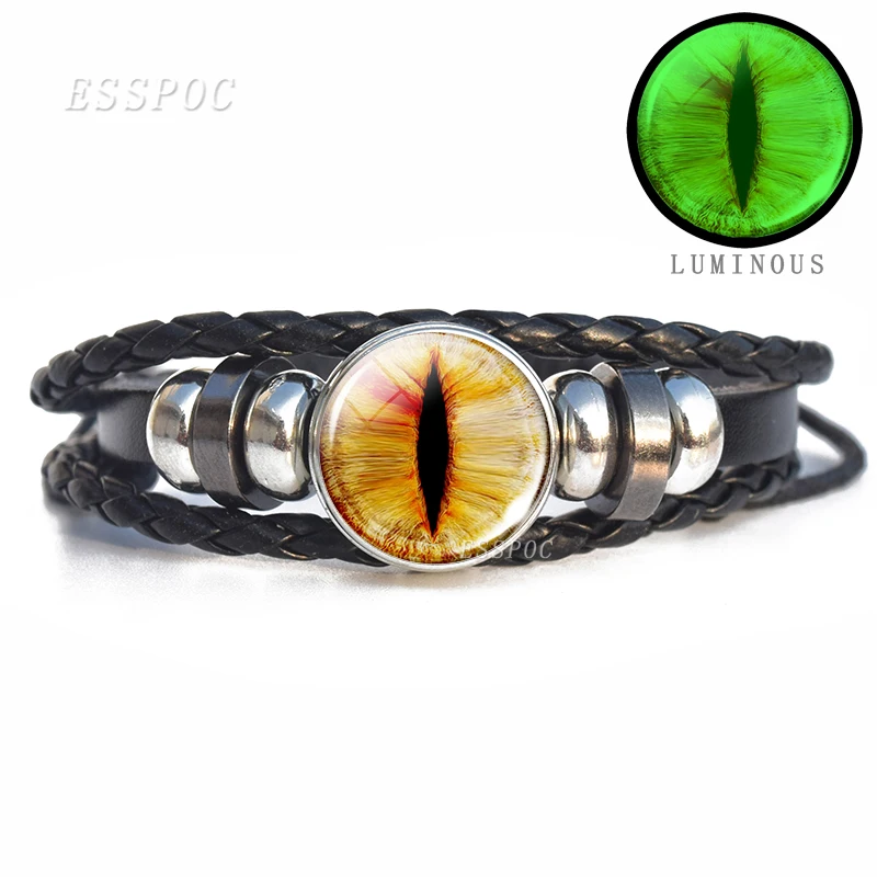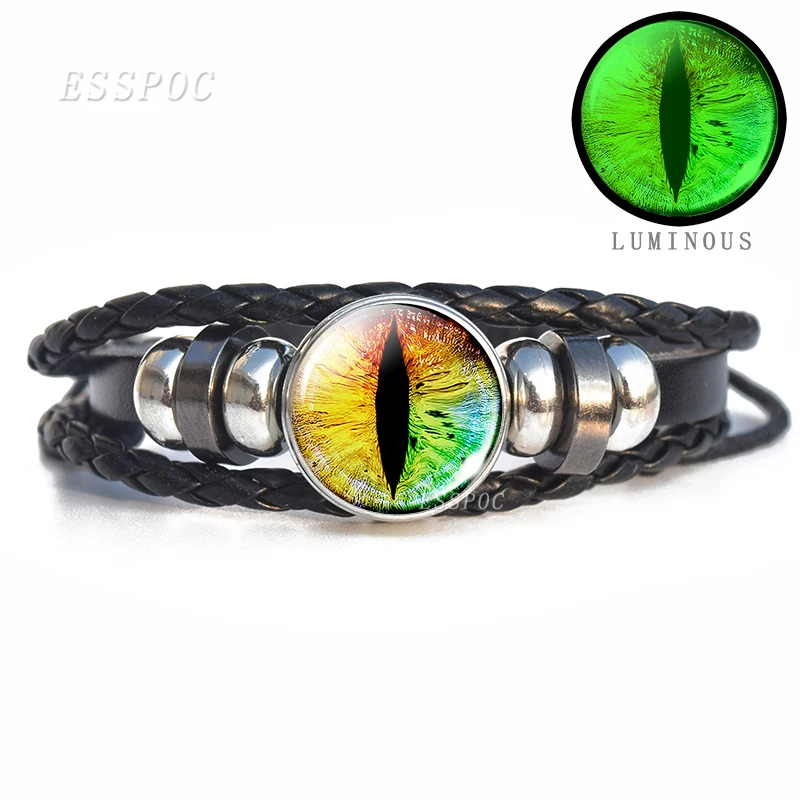 Светящийся в темноте браслет с глазом дракона от сглаза стеклянный купол кожаные браслеты модные браслеты в стиле стимпанк ювелирные изделия для женщин и мужчин в подарок
