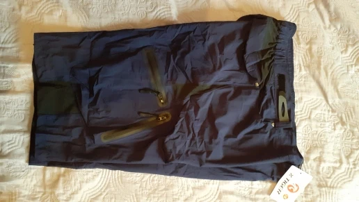 Второй, который я покупаю. Смотрите размеры, так как они меньше. Отличный материал я использую их для прогулок... Он очень легкий, быстро сохнет, материал чувствует себя качественно, он эластичен, а карманы очень функциональны. Ключи, цель и даже место для нескольких вещей больше, если вы хотите .. Рекомендуется 100%.