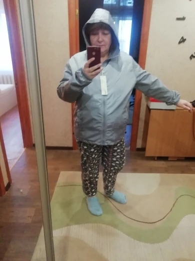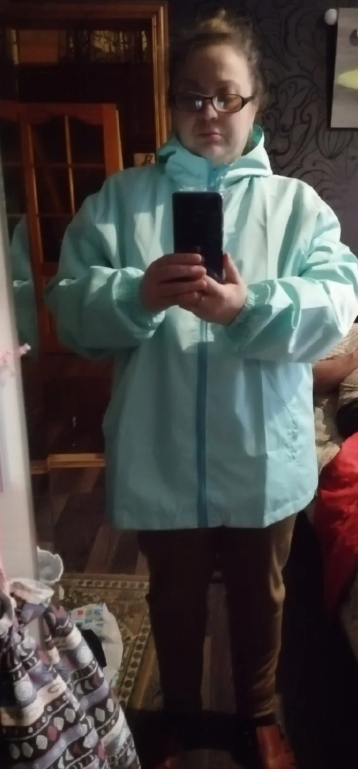 Куртка понравилась - ветровка на подкладке. На рост 168 см, вес 85 кг - взяла размер 7xl, не угадала. Большой размер, буду ушивать. Доставлено быстро, трек отслеживался, Упаковано нормально, Куртка соответствует заказу и описанию. Благодарю продавца. Рекомендую.