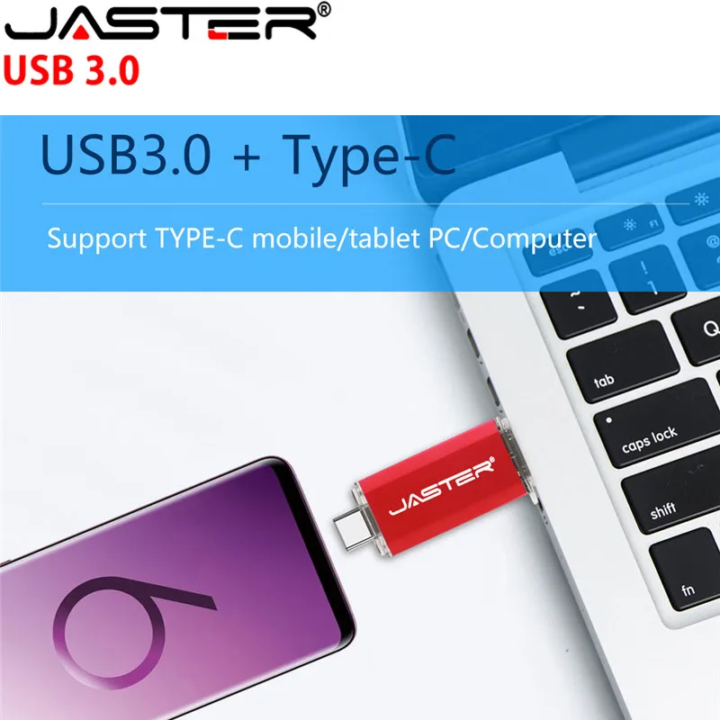 JASTER Type-C OTG флеш-накопитель USB 3,0, 64 ГБ, 32 ГБ, 16 ГБ, фле...