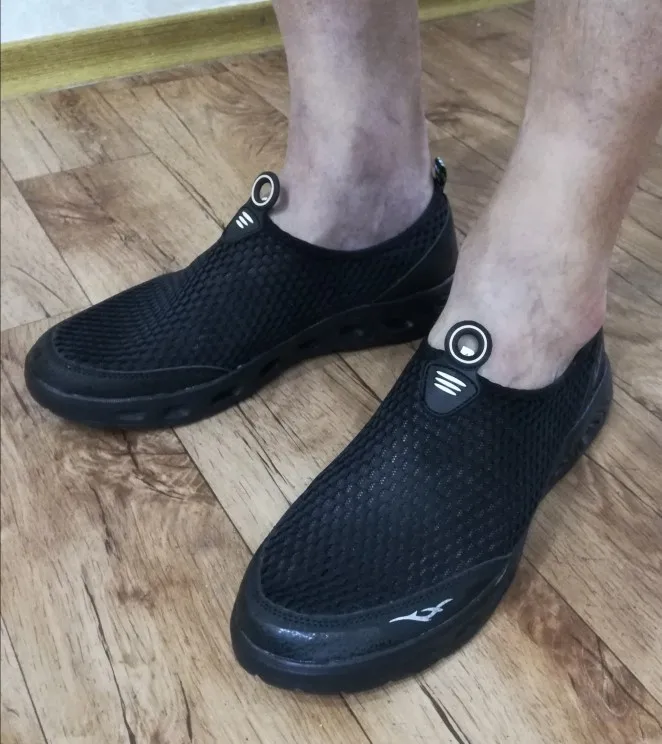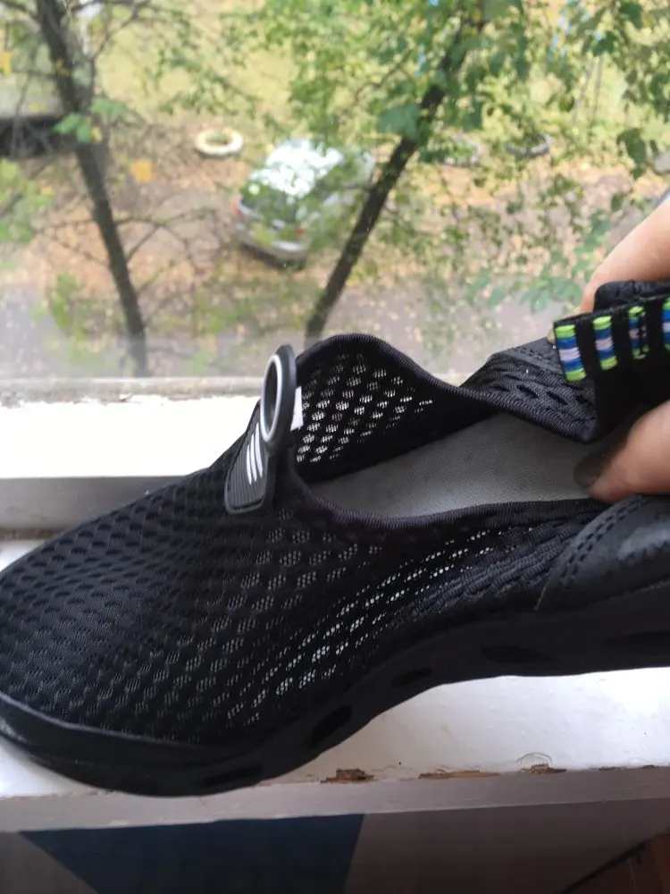 Мужу очень понравились, приехали за две недели, лёгкие, стельку надо свою вставлять. В подошве дырки сквозные, как ходить на улице не знаю, мы брали для помещения.
