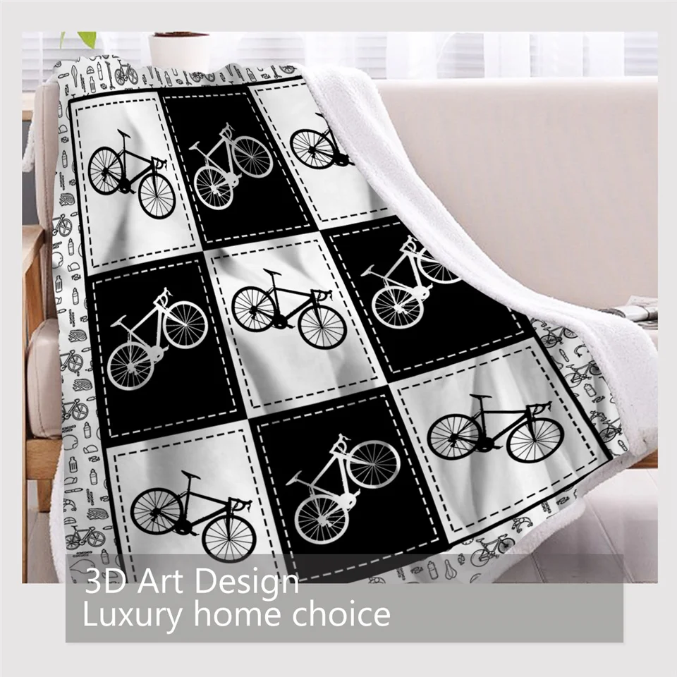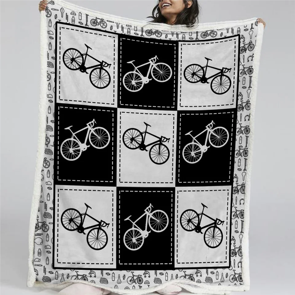 Черно-белое покрывало для кровати с рисунком велосипеда, 130x150