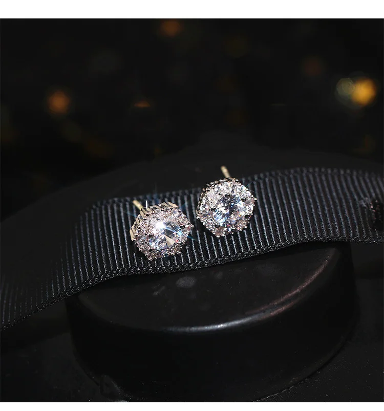 Женские Круглые Серьги серебряного цвета с фианитом, маленькие серьги-гвоздики с фианитами для девушек и женщин, ювелирные изделия